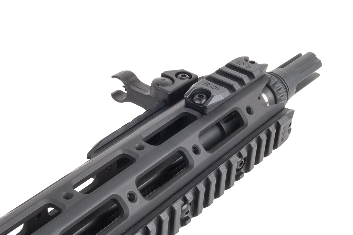 - Programmierbare Schussfolge - Die Waffe kann je nach Bedarf auf Vollauto, Burst oder Semiauto eingestellt werden.