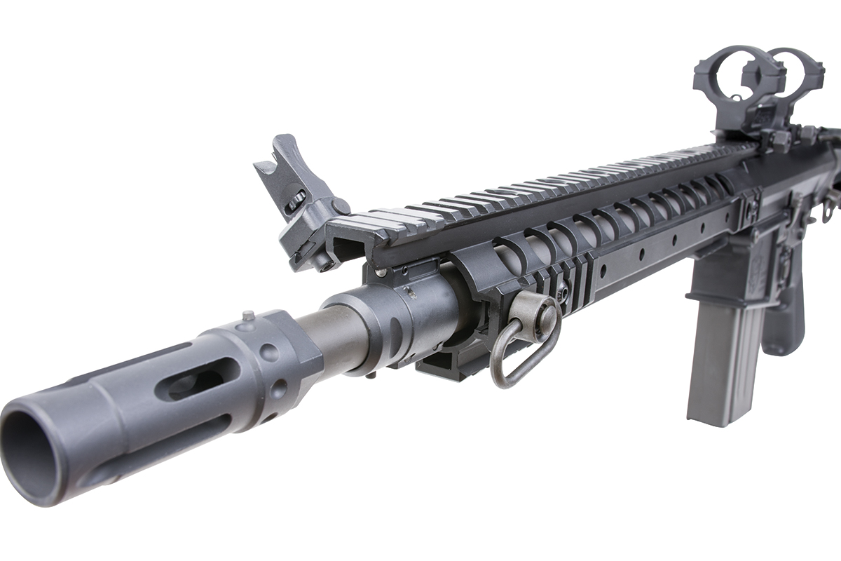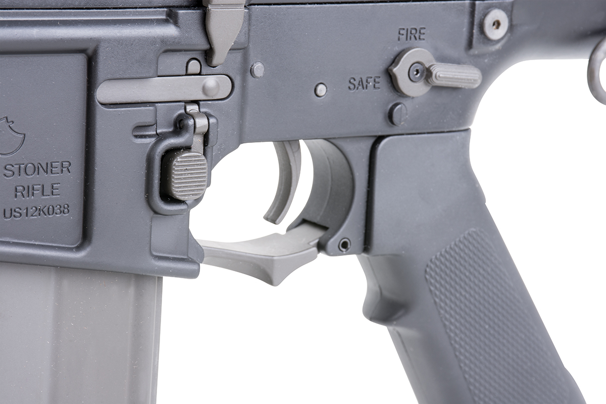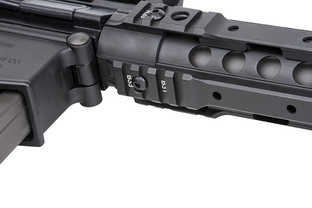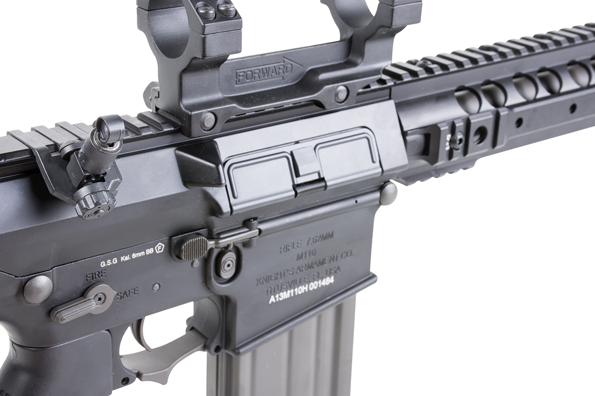 Der hochwertige Nachbau aus dem Hause ARES wurde mit verschiedenen Knight's Armament Original-Markings und einer eingearbeiteten Seriennummer versehen. Das Gewehr ist für Rechts- und Linkshänder geeignet und verfügt über ein funktionierendes Bolt-Catch System. Der feste Schaft besteht aus Nylon Fiber, die Gearbox und die Gears aus Vollmetall. Body und Außenlauf wurden aus einer CNC bearbeiteten 6063 Aluminiumlegierung gefertigt.