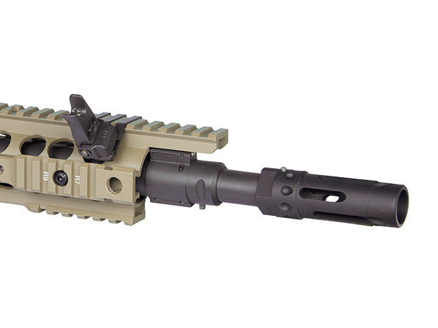 Der hochwertige Nachbau aus dem Hause ARES wurde mit verschiedenen Knight's Armament Original-Markings und einer eingearbeiteten Seriennummer versehen. Das Gewehr ist für Rechts- und Linkshänder geeignet und verfügt über ein funktionierendes Bolt-Catch System. Der feste Schaft besteht aus Nylon Fiber, die Gearbox und die Gears aus Vollmetall. Body und Außenlauf wurden aus einer CNC bearbeiteten 6063 Aluminiumlegierung gefertigt.