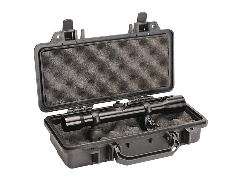 Die Lieferung erfolgt inklusive stabilem Koffer mit Noppenschaum. Damit kann das hochwertige Zielfernrohr sicher aufbewahrt werden.