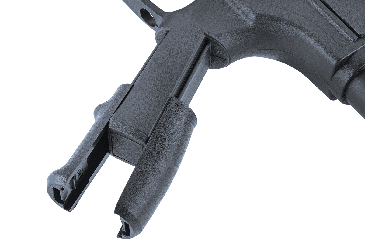 Eine weitere Besonderheit ist der ergonomische Pistolengriff mit wechselbaren Griffschalen. Praktischerweise sind sechs Griffschalen (3 Front/3 Rück) bereits im Lieferumgang enthalten.