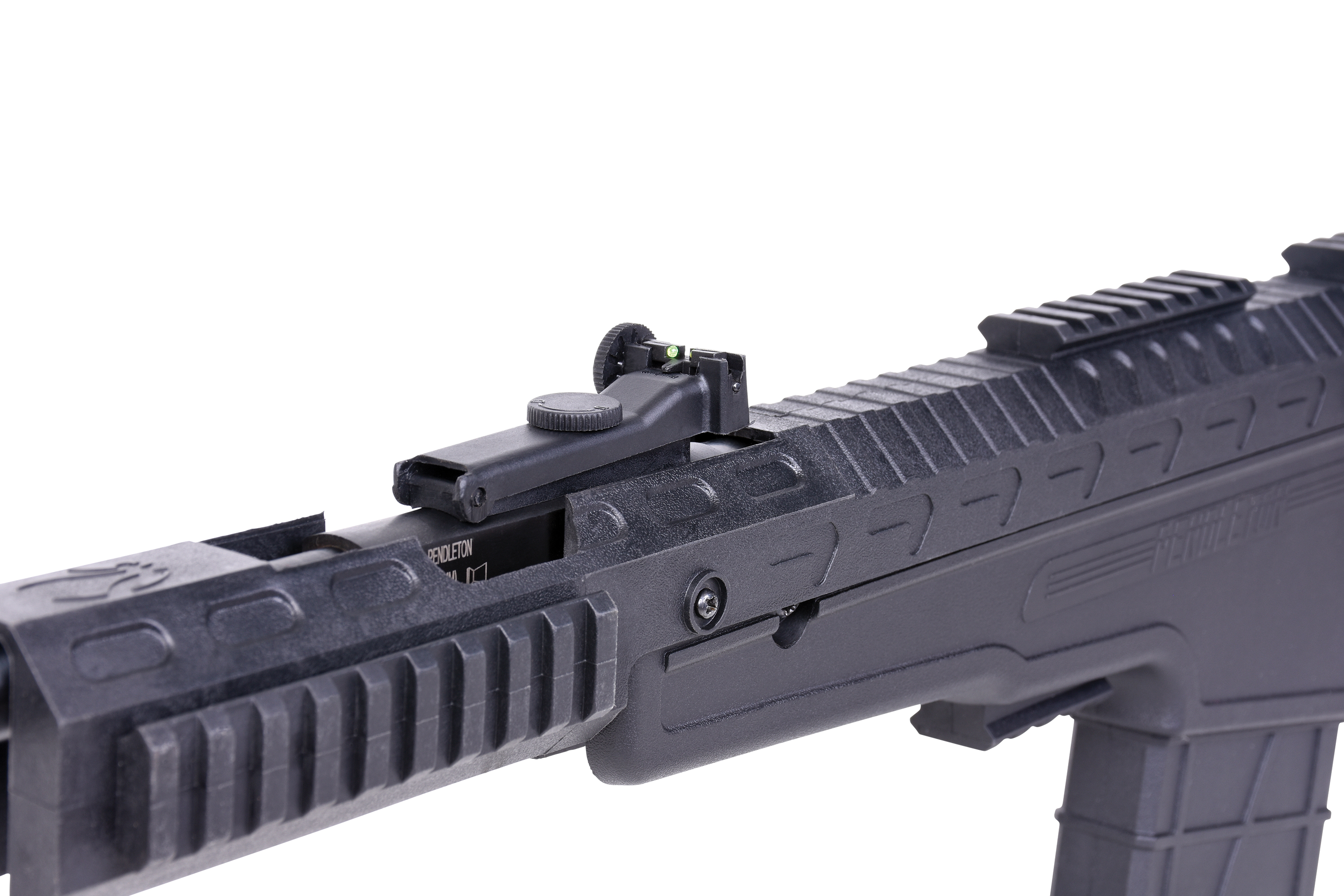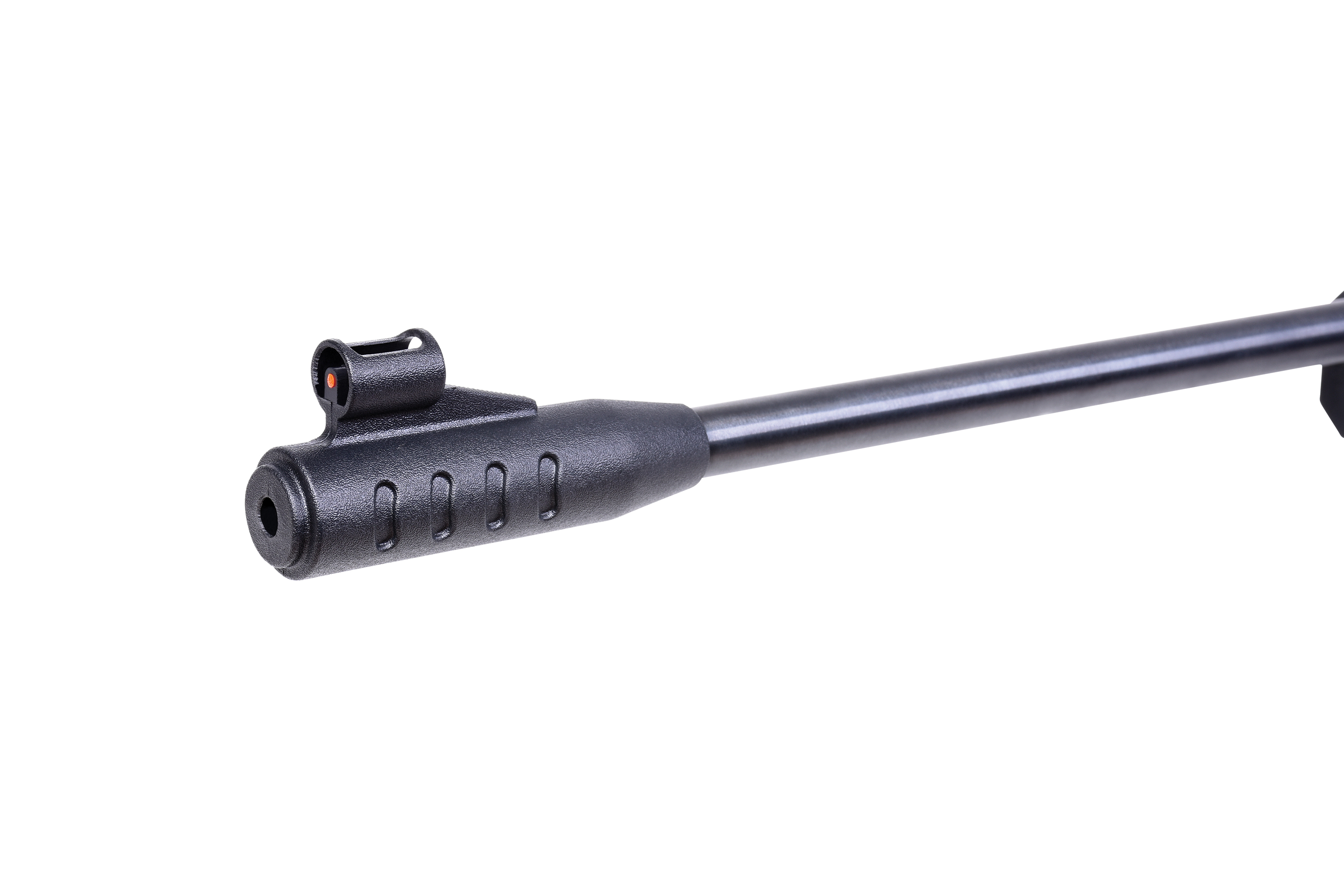 Für zusätzlichen Komfort und festen Halt sorgt der in fünf Stufen verstellbare Teleskop-Schaft im AR-15 Style. Er kann auch nach Belieben durch alle AR-15 Schäfte ausgetauscht werden. Die Fiber Optik mit höhen- und seitenverstellbarer Kimme rundet das Gesamtbild dieses Luftgewehrs ab.