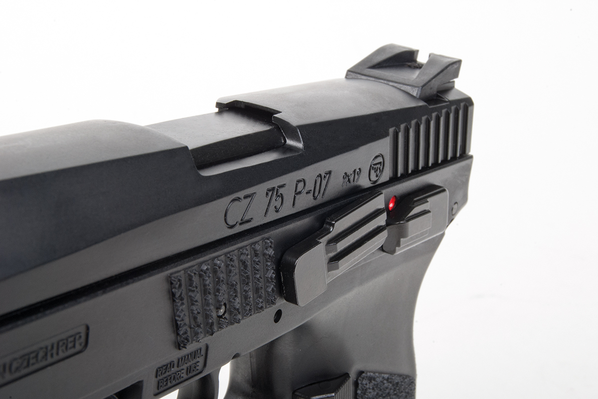 Die CZ 75 (auch Brünner M75 genannt) ist seit den 70er Jahren bis heute ein beliebtes Modell für Armee und Polizei. Bei der Variante P-07 Duty handelt es sich um einer Weiterentwicklung, die nach dem Standard 0112.03 'Autoloading Pistols for Police Officer' gebaut wird. Sie unterscheidet sich vom Standard-Modell durch den modifizierten Abzug (auch für Handschuhträger), den gummierten und speziell geriffelten Griff, Rails für diverse Anbauteile (gesetzliche Bestimmungen beachten) und den Beavertail für bessere Handlage.