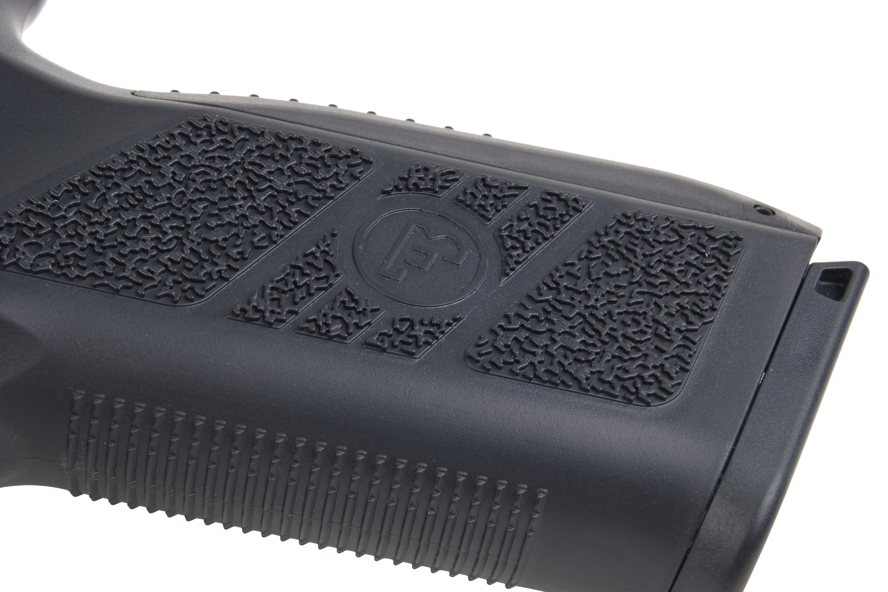 Die hochwertige Replika aus dem Hause ASG ist kompatibel mit 4,5mm Diabolos. Der repetierende Metallschlitten sorgt für ein sehr realistisches Blowback-Erlebnis. Die führige Einsatzpistole verfügt über eine integrierte Railschiene zur Anbringung verschiedener Zubehörteile, einen gezogenen Lauf, eine 3-Punkt-Visierung, eine beidhändige Sicherung, eine individuelle Seriennummer und ein Doppelmagazin mit 2x8 Schuss.