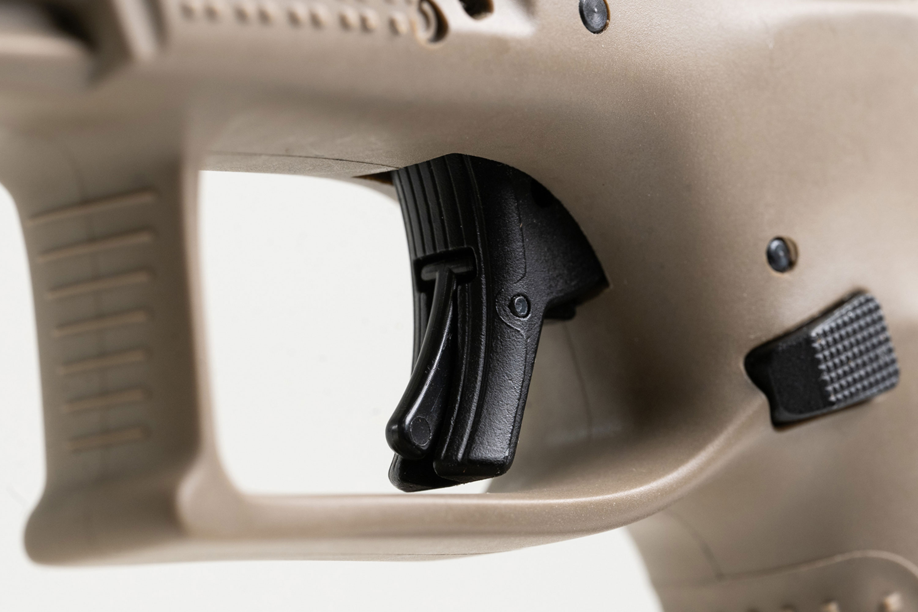 - Kaliber 6mm BB, angetrieben durch eine 12g CO2-Kapsel im Magazin