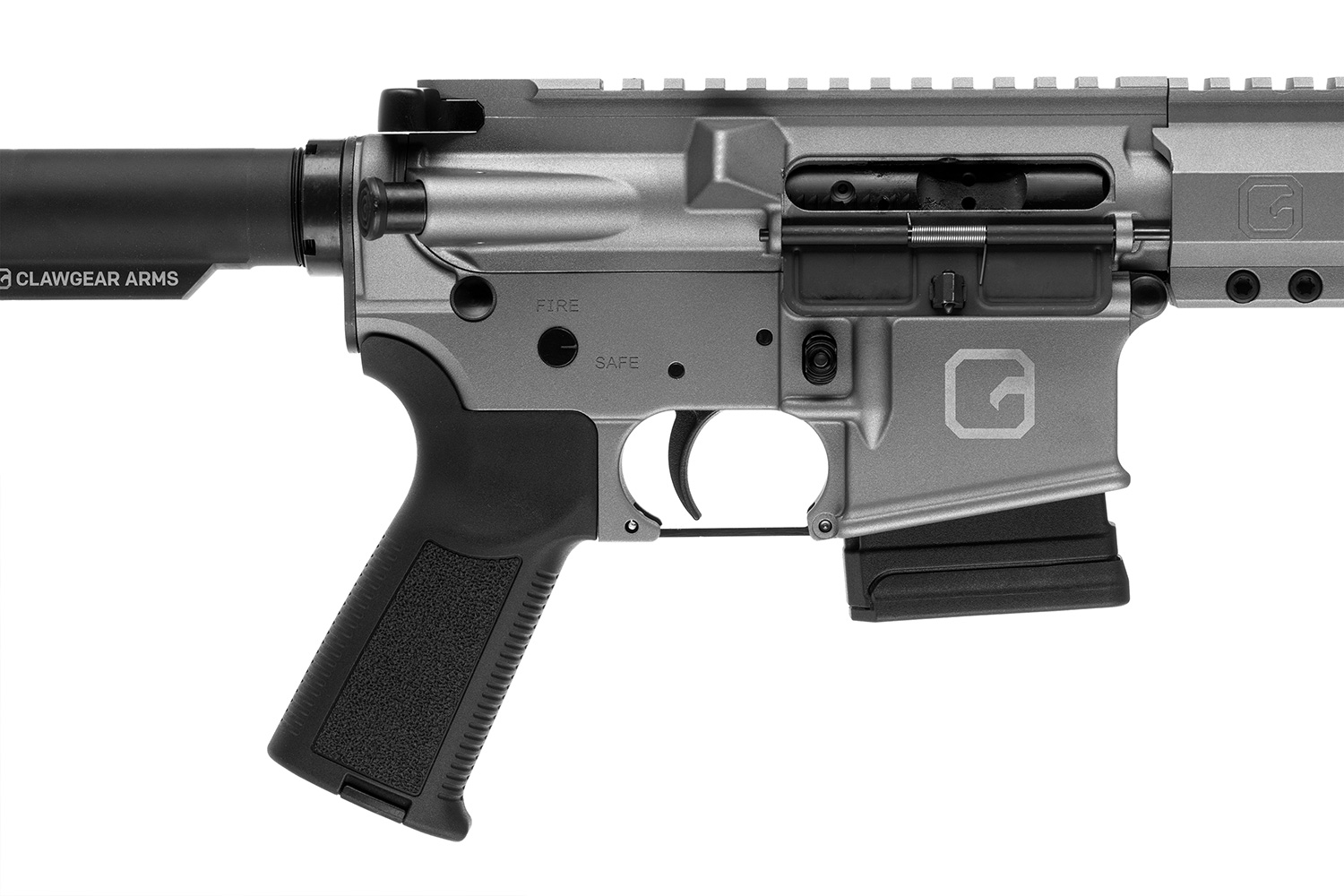 - Freischwingender Clawgear Arms Handguard: ausgestattet mit M-Lok- und Picatinny-Schnittstellen für vielfältige Individualisierungsmöglichkeiten