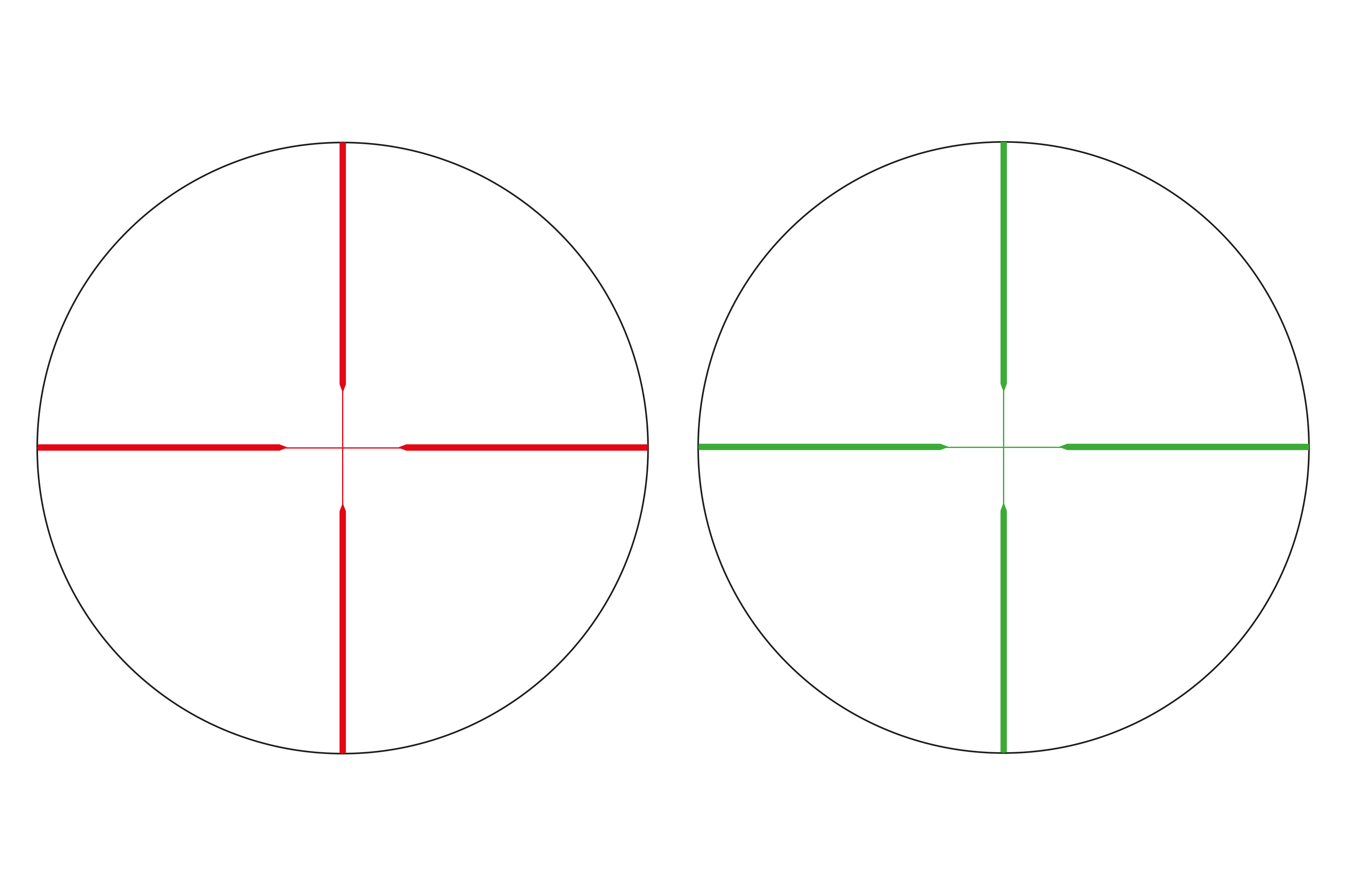 Die Helligkeit des beleuchteten Zielfernrohrs ist in jeweils 5 Stufen einstellbar. Man kann zwischen den Farben Rot und Grün wählen.
