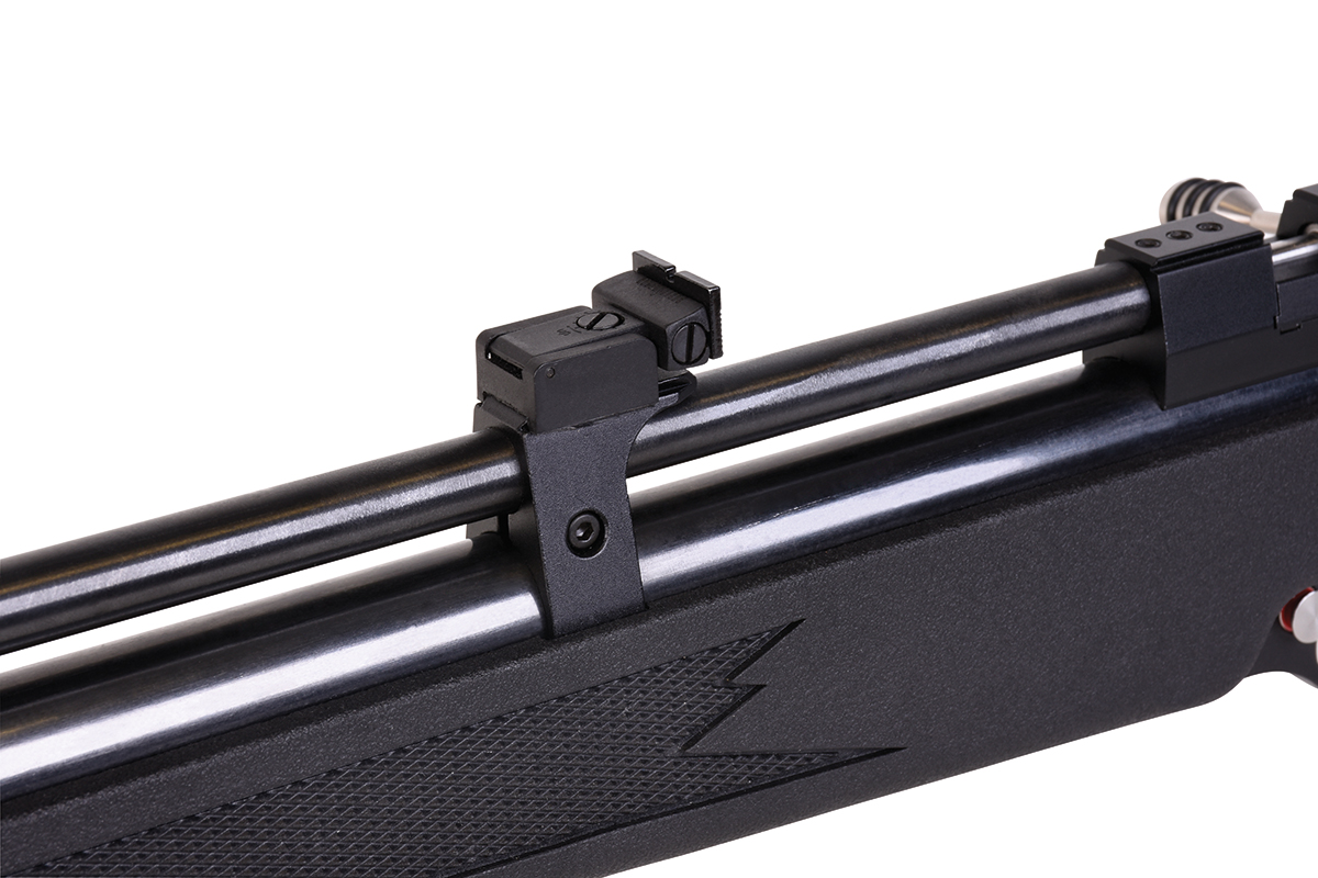 Das Gewehr kann sowohl im Einzelschuss-Modus als auch mit dem mitgelieferten 9-Schuss Magazin betrieben werden und verfügt über eine gefräste Prismenschiene, eine einstellbare hintere Visierung, einen einstellbaren Abzug und einen abnehmbaren Schalldämpfer.