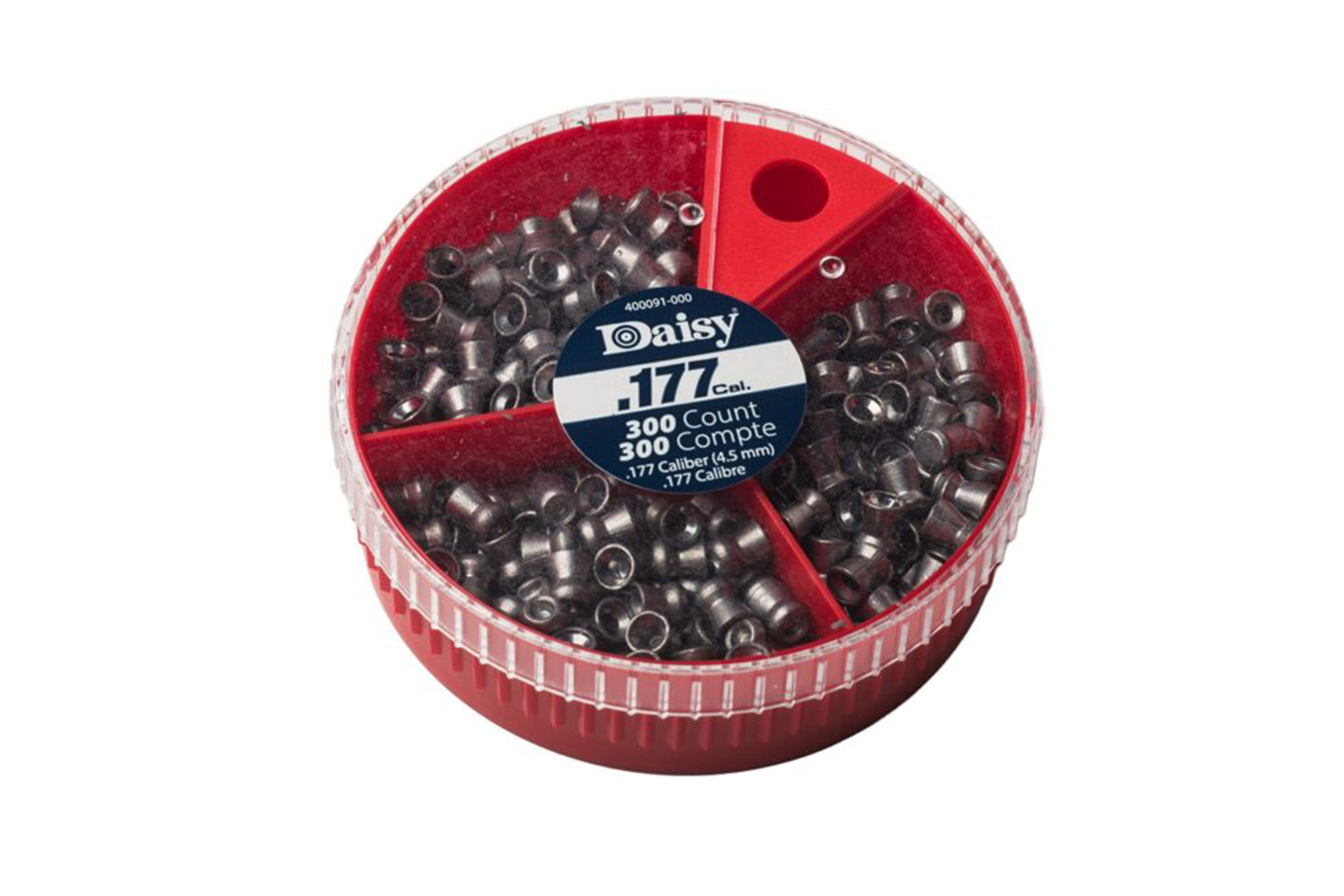 Der Behälter von Daisy hält eine Vielzahl von Pelletarten. Durch einfaches Drehen des Deckels erhalten Sie jeweils 100 Flach- und Spitzkopf und Hohlspitz Diabolos.