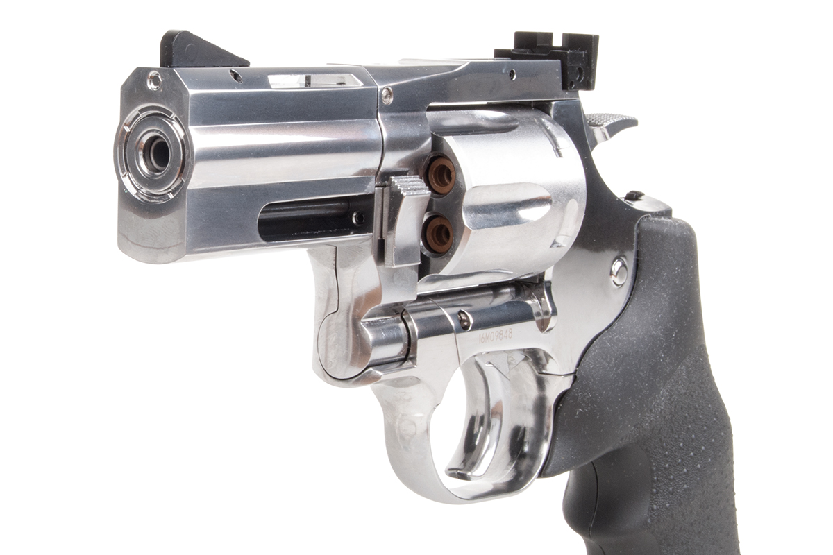 Der hochwertig verarbeitete Nachbau aus dem Hause ASG mit einer Energie von ca. 1,8 Joule wird mit CO2 betrieben. Der Revolver aus Vollmetall verfügt über eine individuelle Seriennummer, einen Double Action Abzug, eine verstellbare Visierung und ein gummiertes Griffstück im Hogue Design.