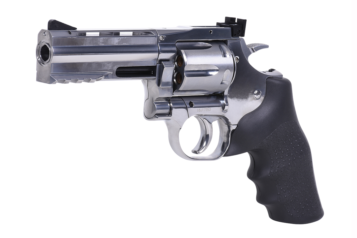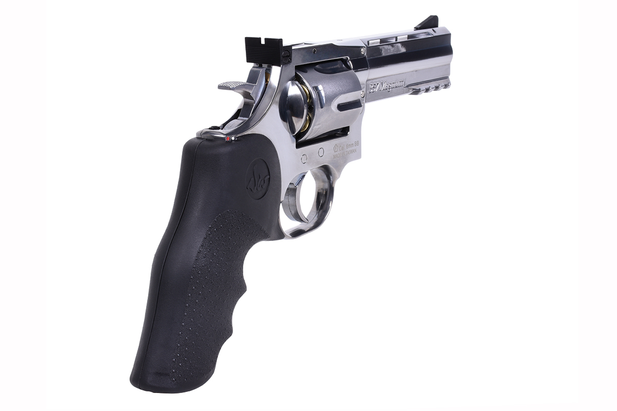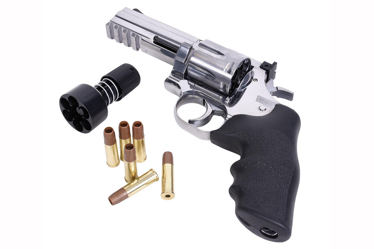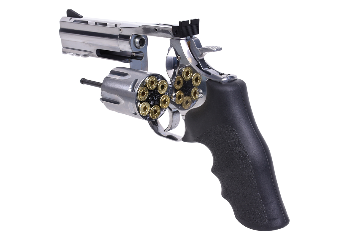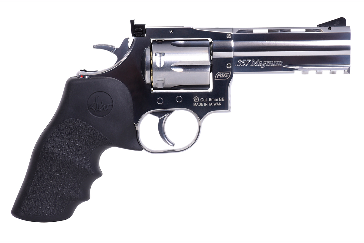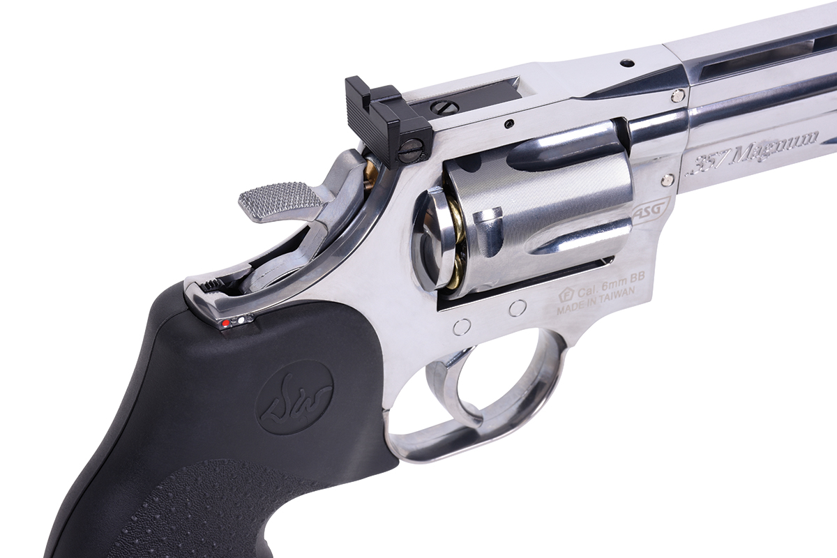 Der hochwertig verarbeitete Nachbau aus dem Hause ASG in Kaliber 6mm BB wird mit Co2 betrieben. Der Revolver aus Vollmetall verfügt über eine Seriennummer, eine Railschiene, einen Double Action Abzug, eine verstellbare Visierung und ein gummiertes Griffstück im Hogue Design. Im Lieferumfang sind ein Speedloader und 6 Hülsen enthalten. Im Griffstück befindet sich zusätzlich ein Innensechskantschlüssel, mit welchem die Co2-Kapsel ganz einfach zu installieren ist.
