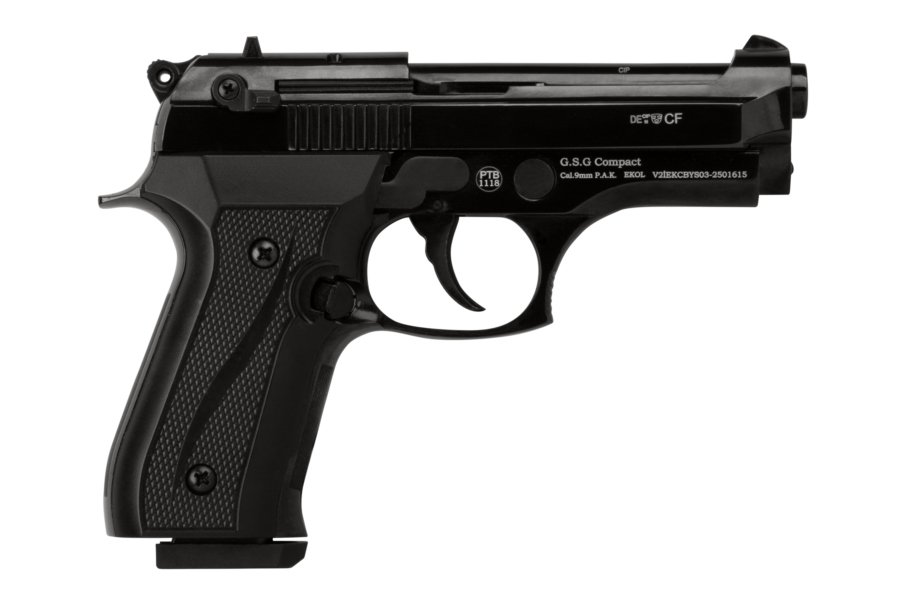 Die EKOL Firat Compact im Kaliber 9mm P.A.K. ist eine kompakte Schreckschusspistole, die sich durch ihre solide Verarbeitung, zuverlässige Funktion und praxisorientierte Ausstattung auszeichnet. Mit ihrem klassischen Design, das sich an bewährten Dienstpistolen orientiert, verbindet sie ansprechende Optik mit ergonomischer Handhabung – geeignet für Rechts- wie Linkshänder.