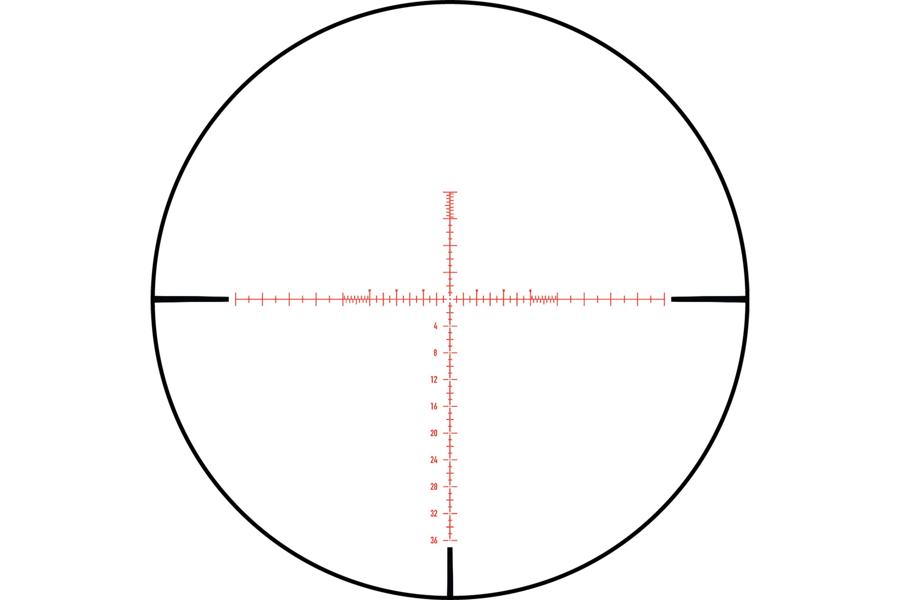 - Verjüngte Balken, um das Auge bei allen Vergrößerungen auf die Mitte des Absehens zu lenken