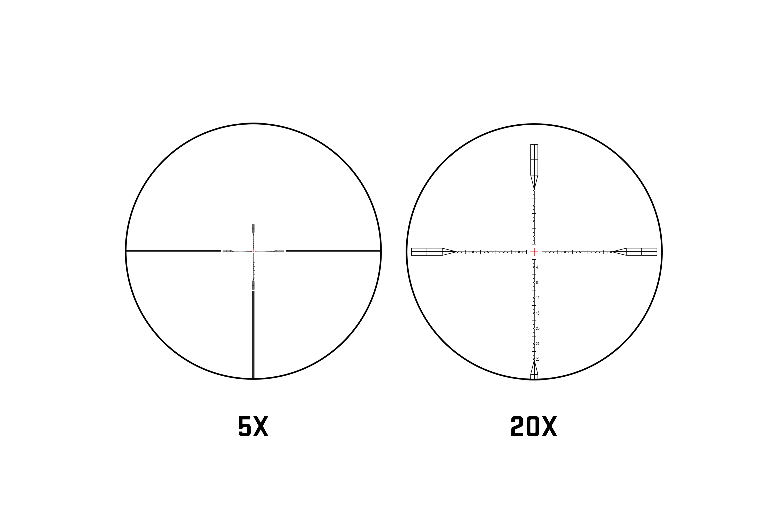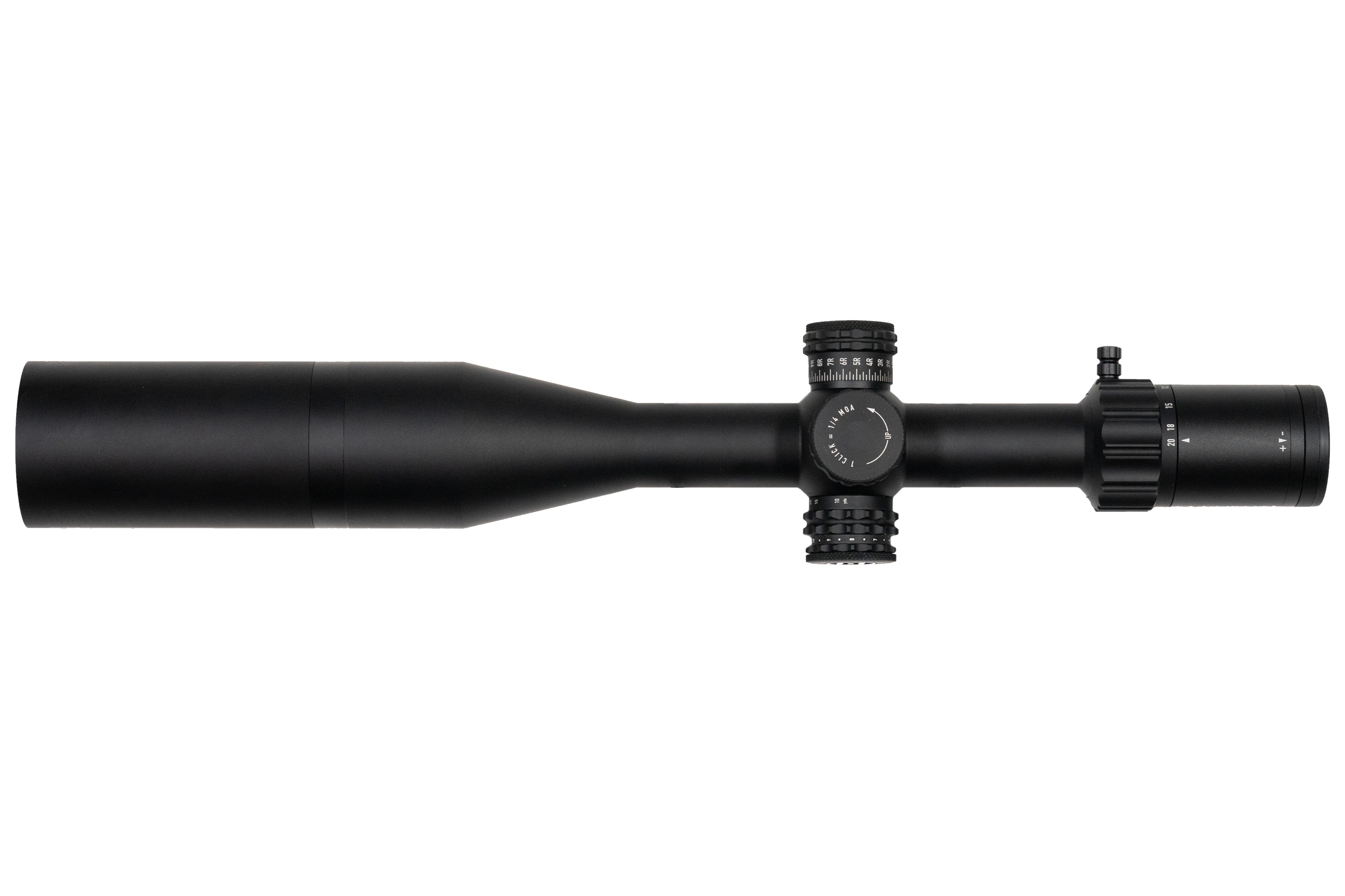 - Werkzeuglos rückstellbare Türme mit 20 MOA pro Umdrehung