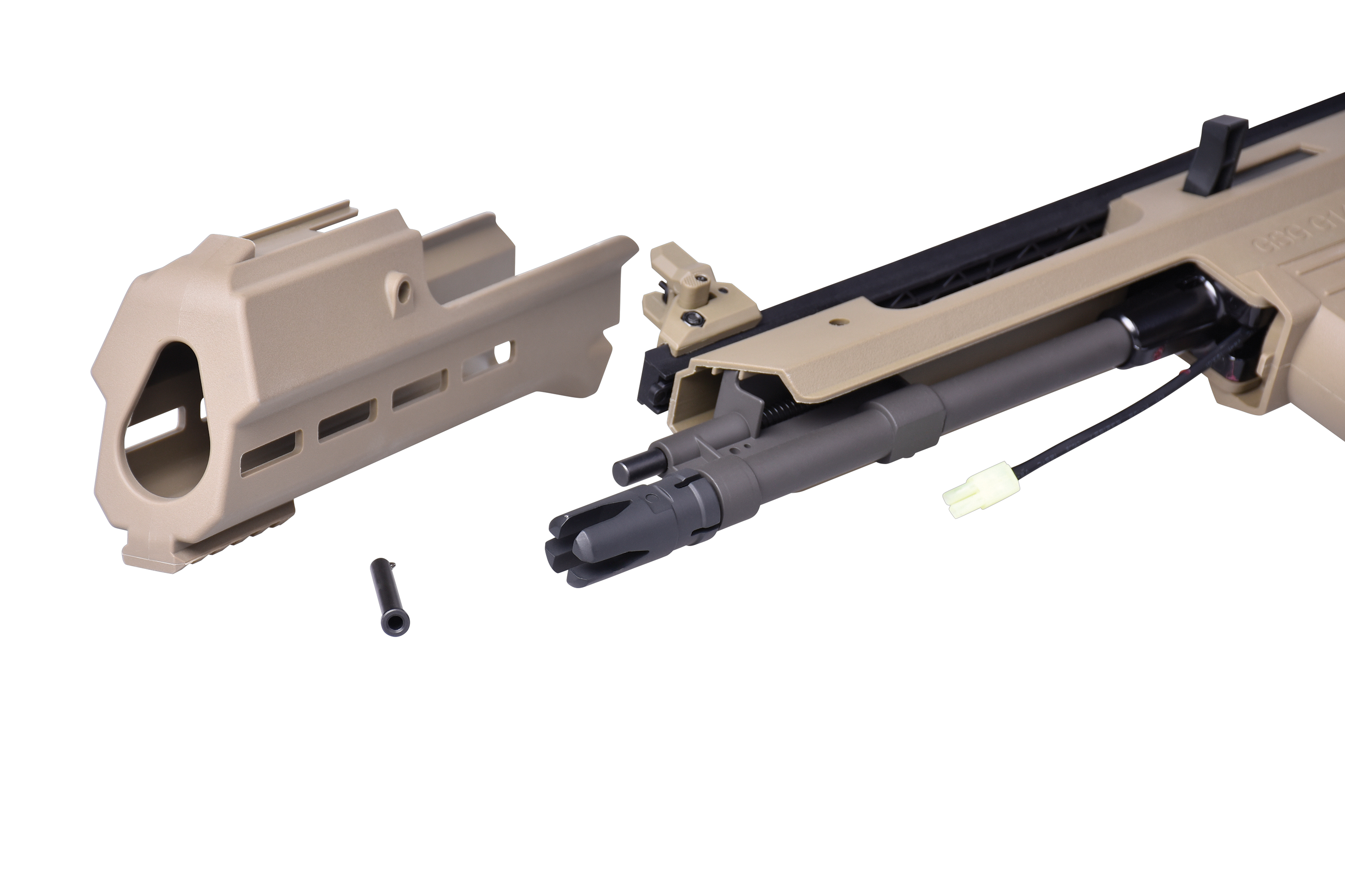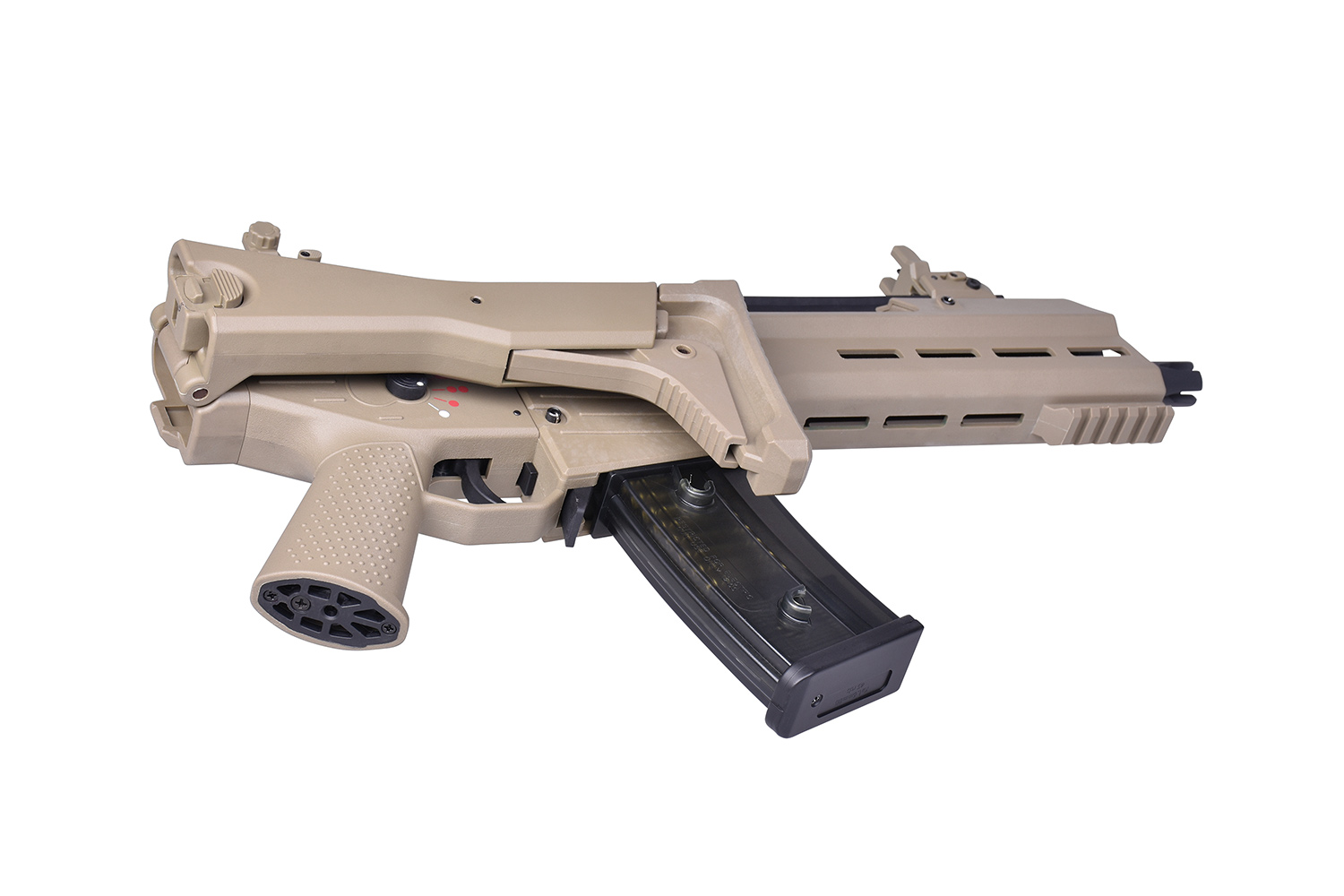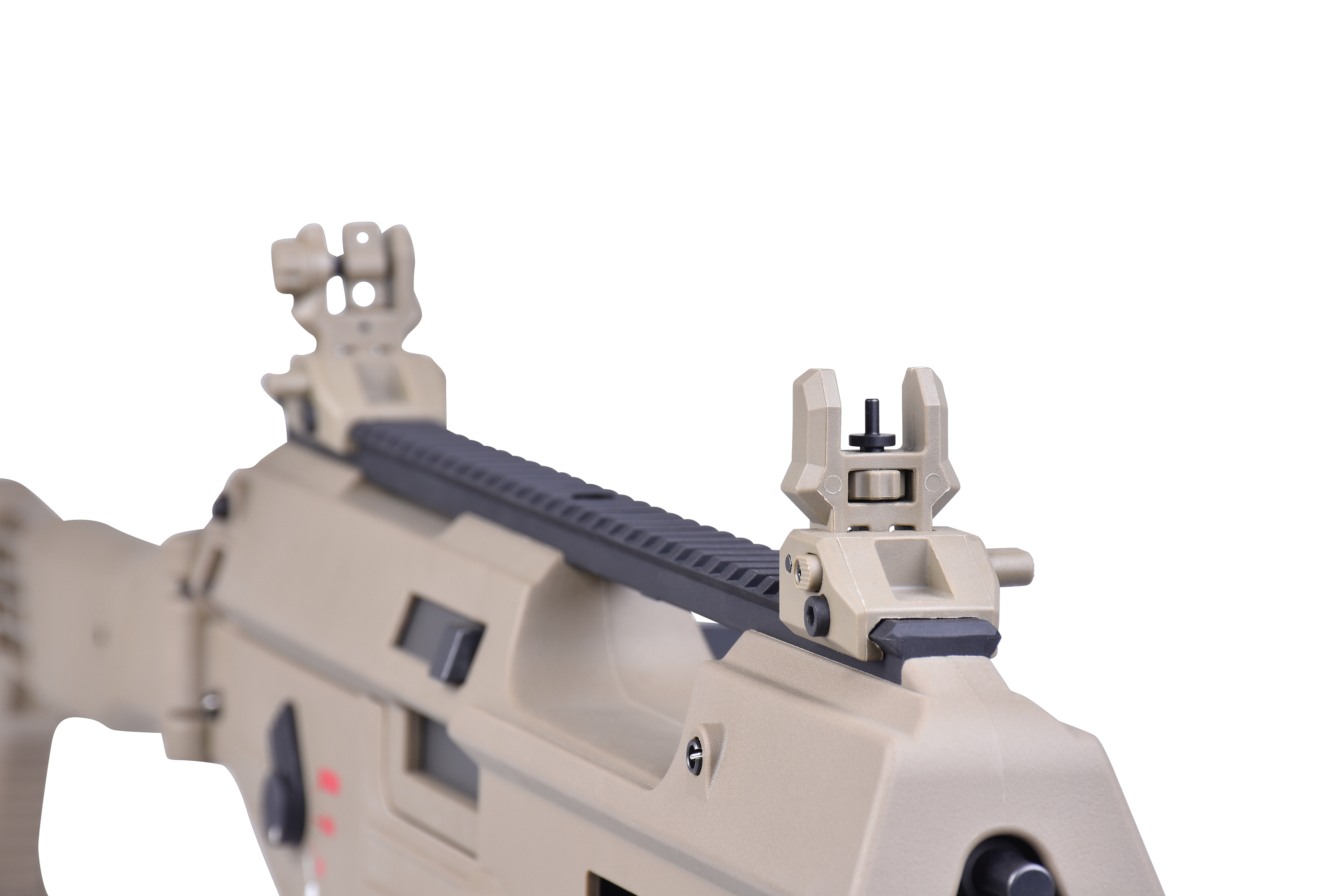 Weiterhin bietet das Modell einen neu designten Klappschaft mit verstellbarer Schulterstütze, eine einstellbare Flip-Up Visierung, ein Anti-Slip Griffstück und ein einstellbares Hop-Up System für ein optimiertes Trefferbild.