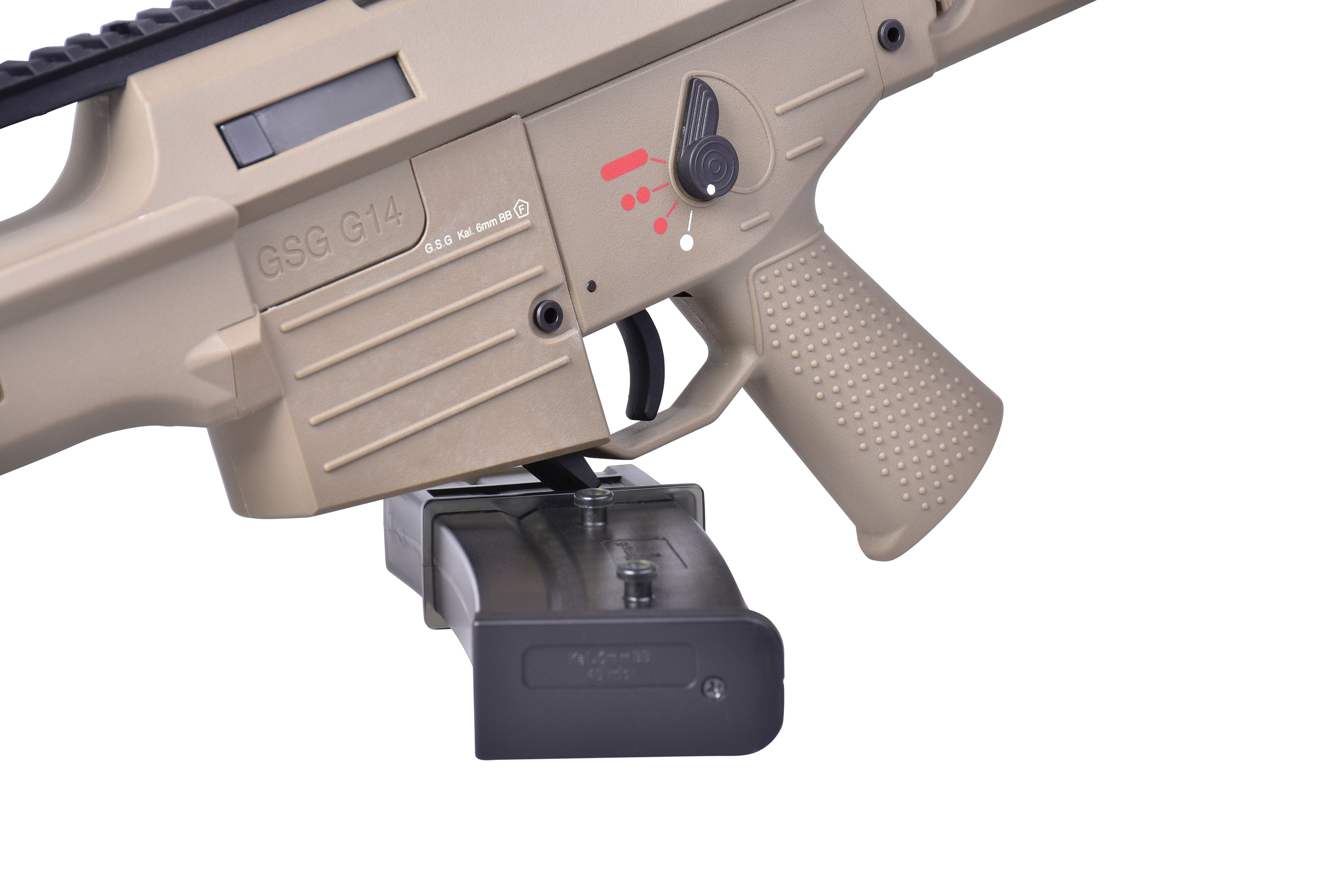 Der Nachfolger der GSG 14, die G14 Carbine aus dem Hause ARES verfügt über die Electronic Blow-Back Funktion 'Real Power'. Hierbei sorgt eine doppelte Federung für einen starken, realistischen Rückstoß.