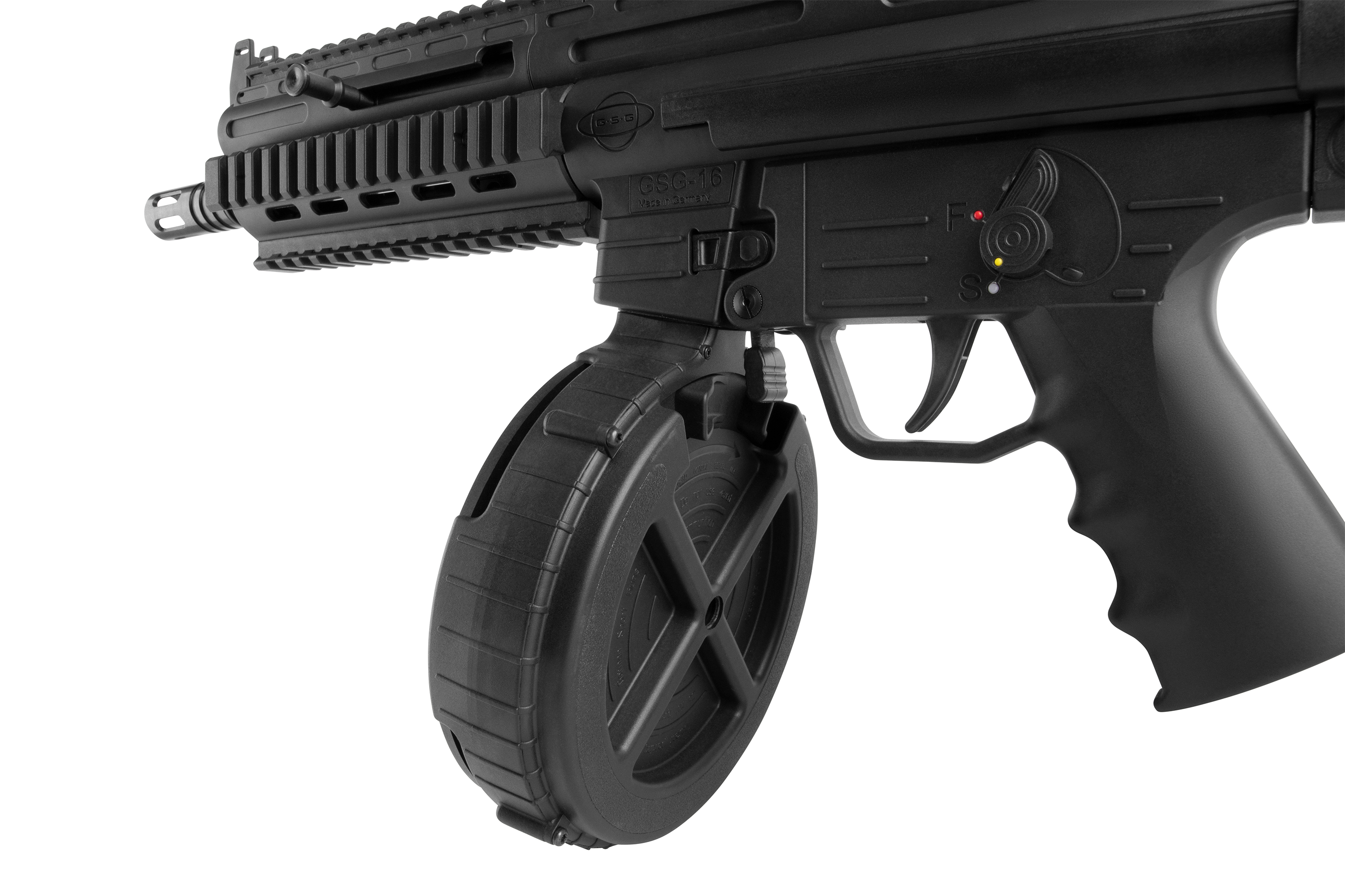 - Inkl. Red-Dot Visier, 110-Schuss Drummag, 22-Schuss Magazin
