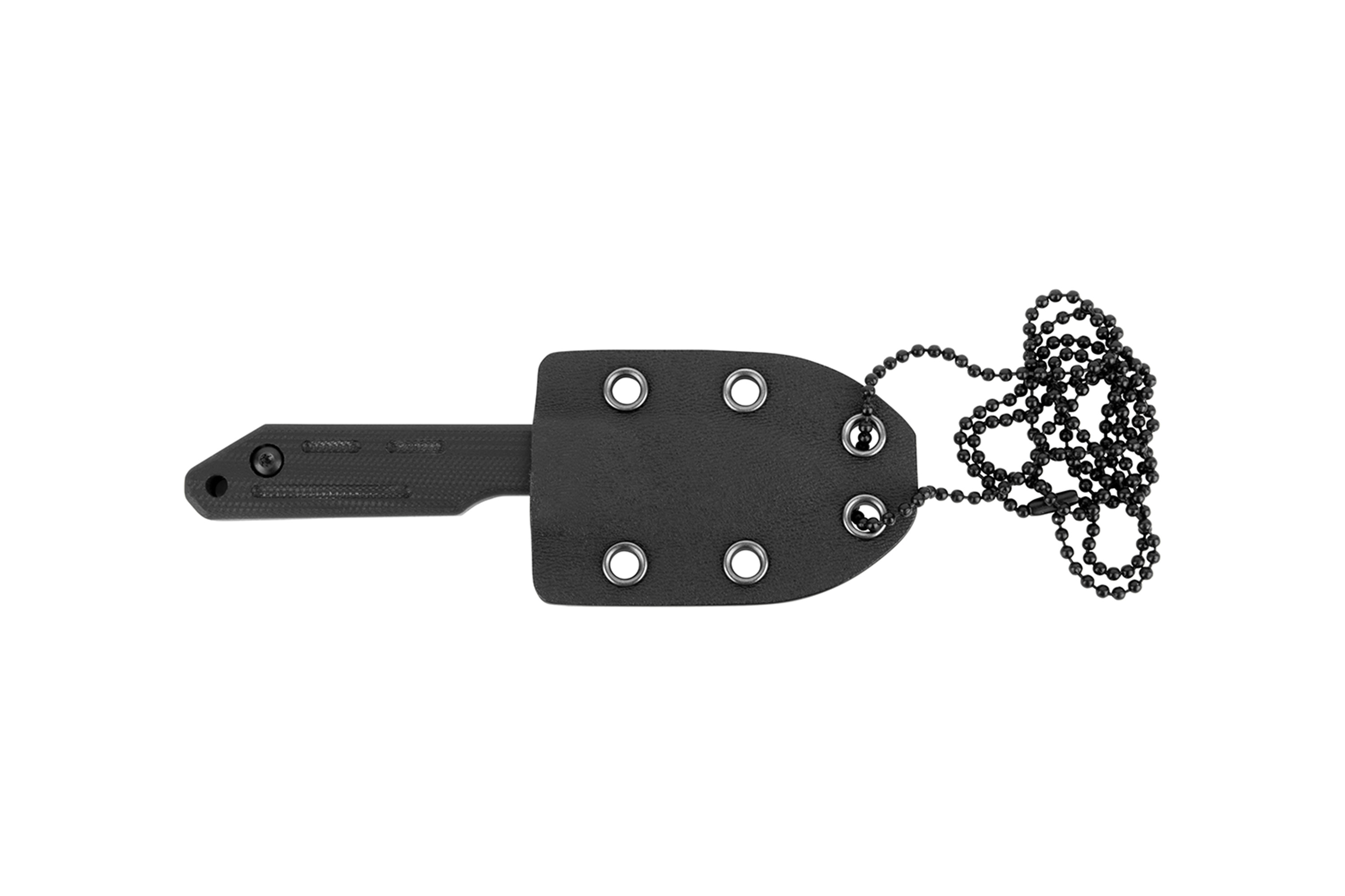 Zum Lieferumfang gehören eine passgenaue Kydexscheide sowie eine Kugelkette für komfortables Tragen als Neck Knife.