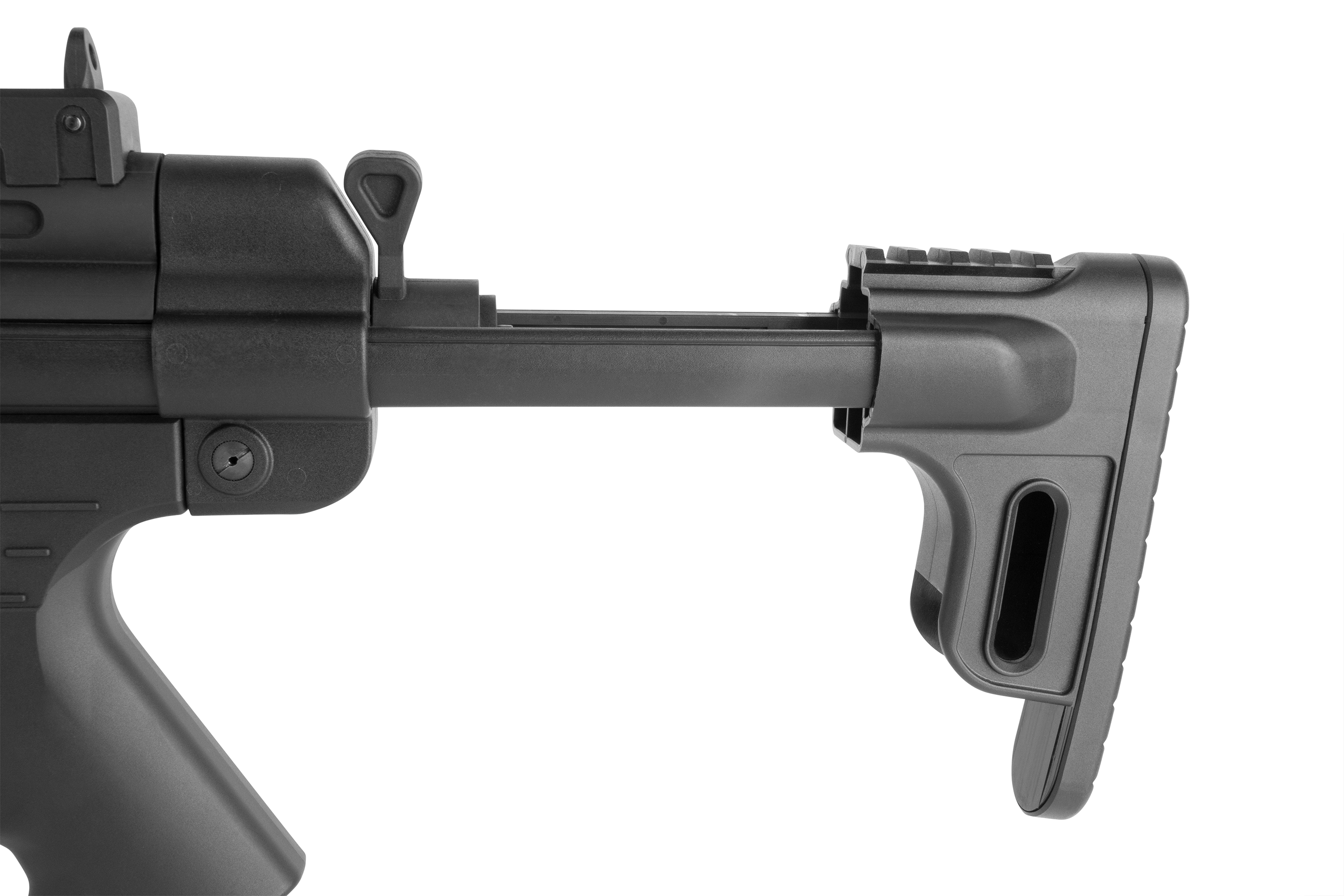 Die einstellbare Schulterstütze der GSG-9 Pistol sorgt für maximalen Komfort und Stabilität während des Schießens. Dies bietet nicht nur einen ergonomischen Vorteil, sondern erhöht auch die Präzision, durch die perfekt Abstimmung auf jeden Körper.