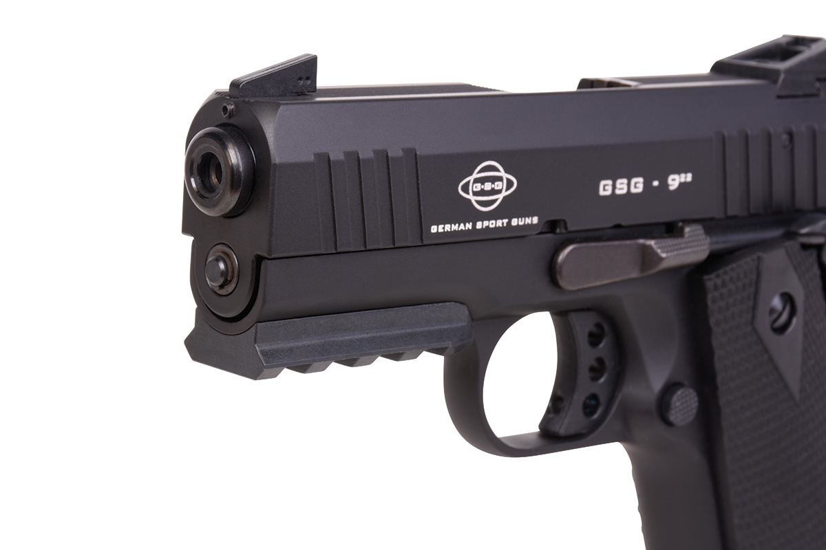 Die GSG-922 Selbstladepistole im Cal. .22 ist eine kompakte Ausführung der beliebten 1911, mit dreizölligem Lauf und einigen Erweiterungen bei der Sicherung.