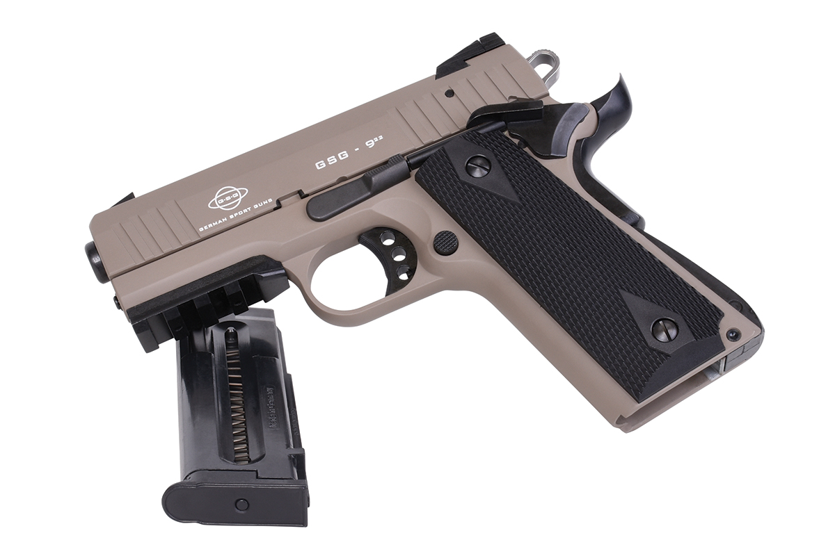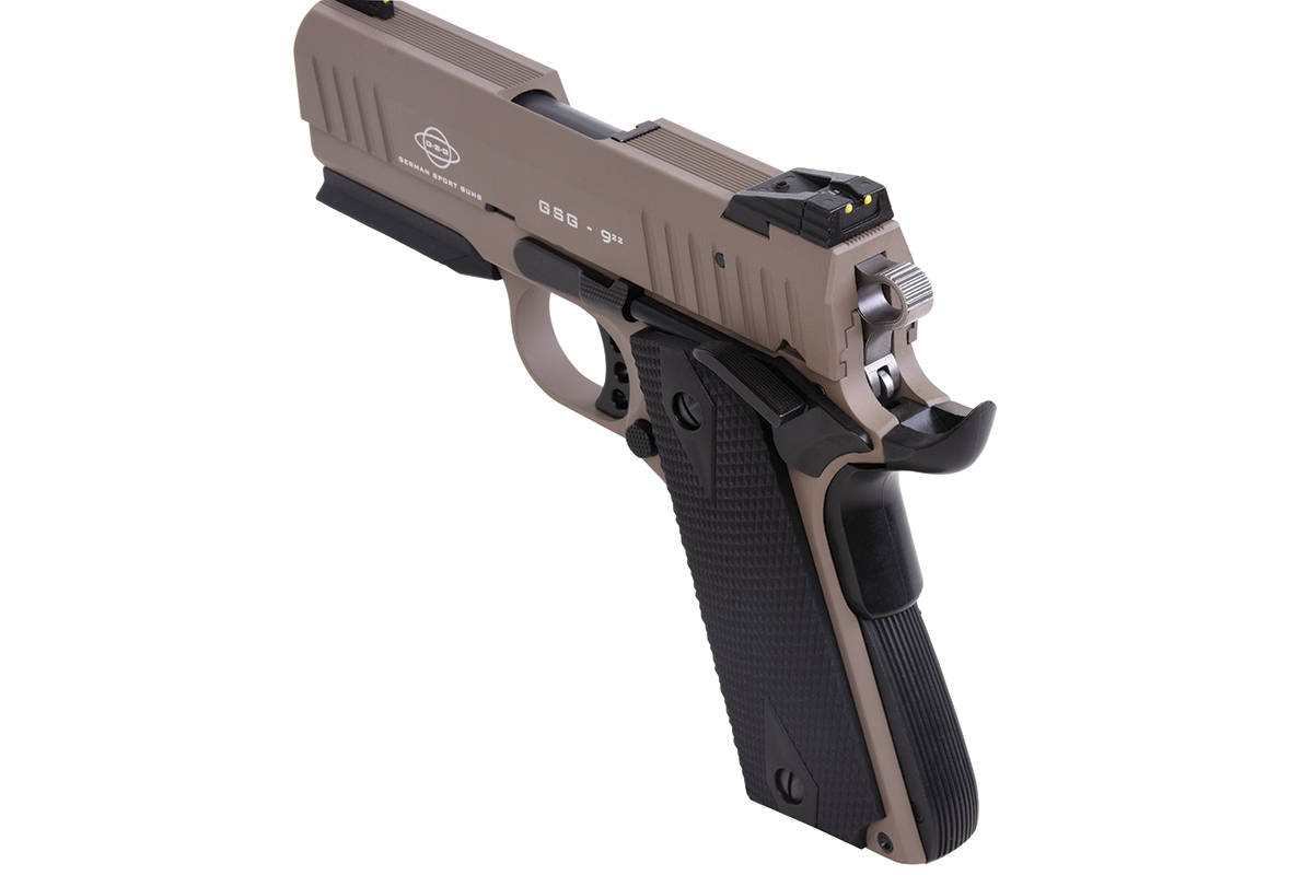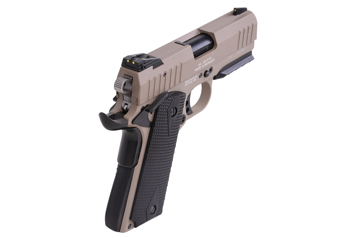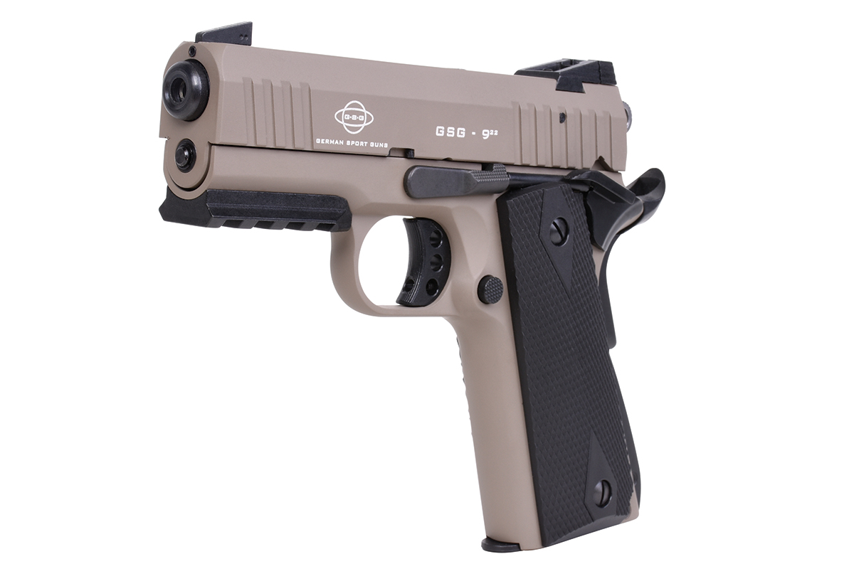 Die GSG-922 Selbstladepistole im Cal. .22 ist eine kompakte Ausführung der beliebten 1911, mit dreizölligem Lauf und einigen Erweiterungen bei der Sicherung.