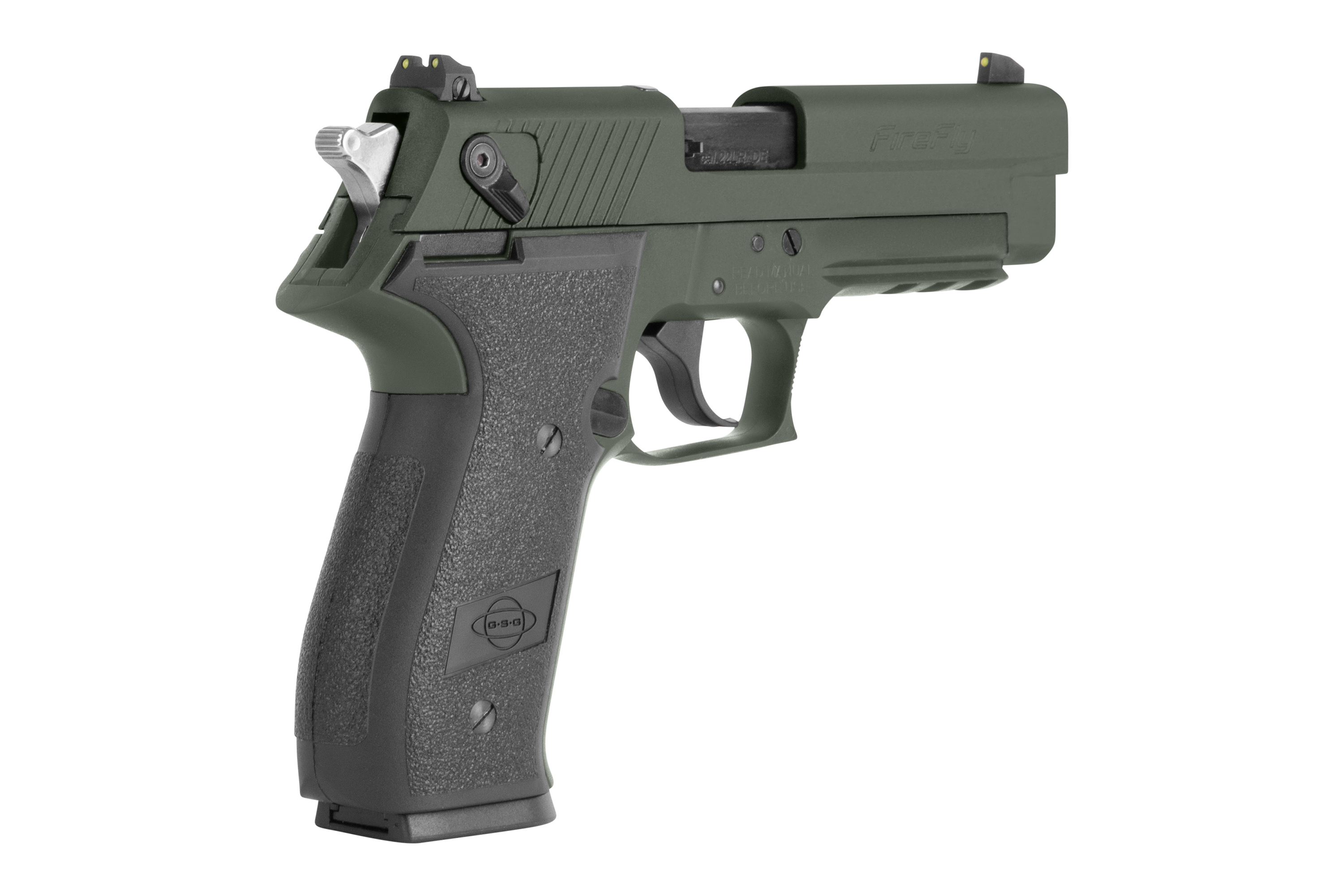 Die GSG Firefly ist eine um 10% verkleinerte Selbstladepistole im Design einer SIG SAUER P226 im Kaliber .22lr mit gleichem System und gleichen Sicherheitsfunktionen. Lediglich im Verschluss unterscheidet Sie sich von ihrer großen Schwester, hier arbeitet ein Masseverschluss (Blowback-System).