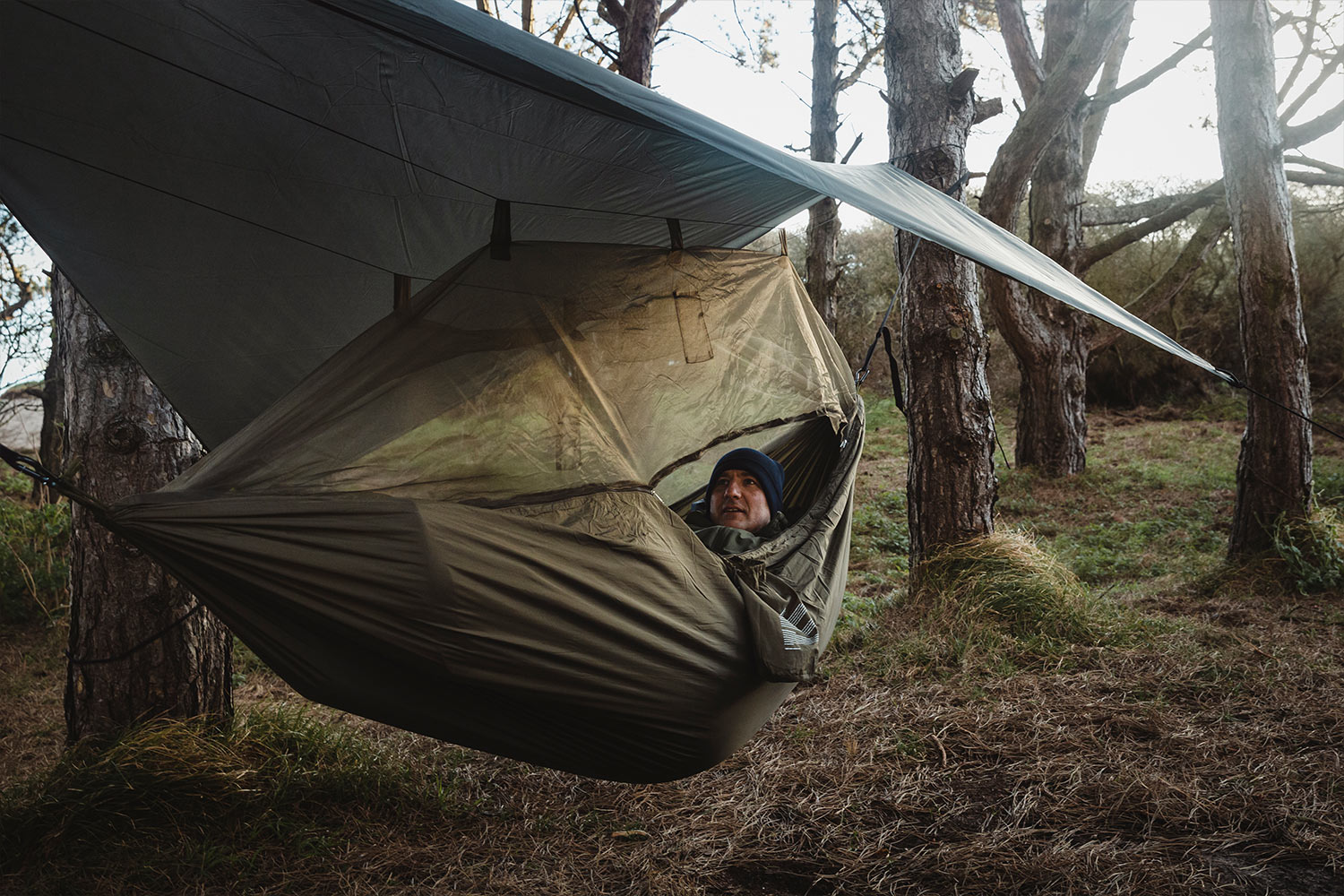 Die Highlander Crusader Waterproof Hammock ist ein durchdachtes Outdoor-Schlafsystem für Übernachtungen abseits des Bodens. Die Hängematte verfügt über ein integriertes Moskitonetz und wird mit einem wasserdichten Tarp (2000 mm Wassersäule) geliefert, das zuverlässigen Schutz vor Regen, Insekten und Witterungseinflüssen bietet.
