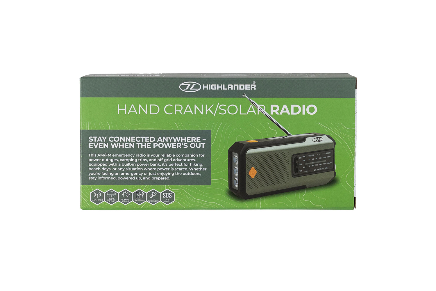 Das Highlander Emergency Survival Radio ist ein kompaktes Notfallradio mit mehreren Energiequellen für den Einsatz im Outdoor-Bereich und in Krisensituationen. Es kombiniert Radioempfang, Beleuchtung und Ladefunktion in einem tragbaren Gerät.