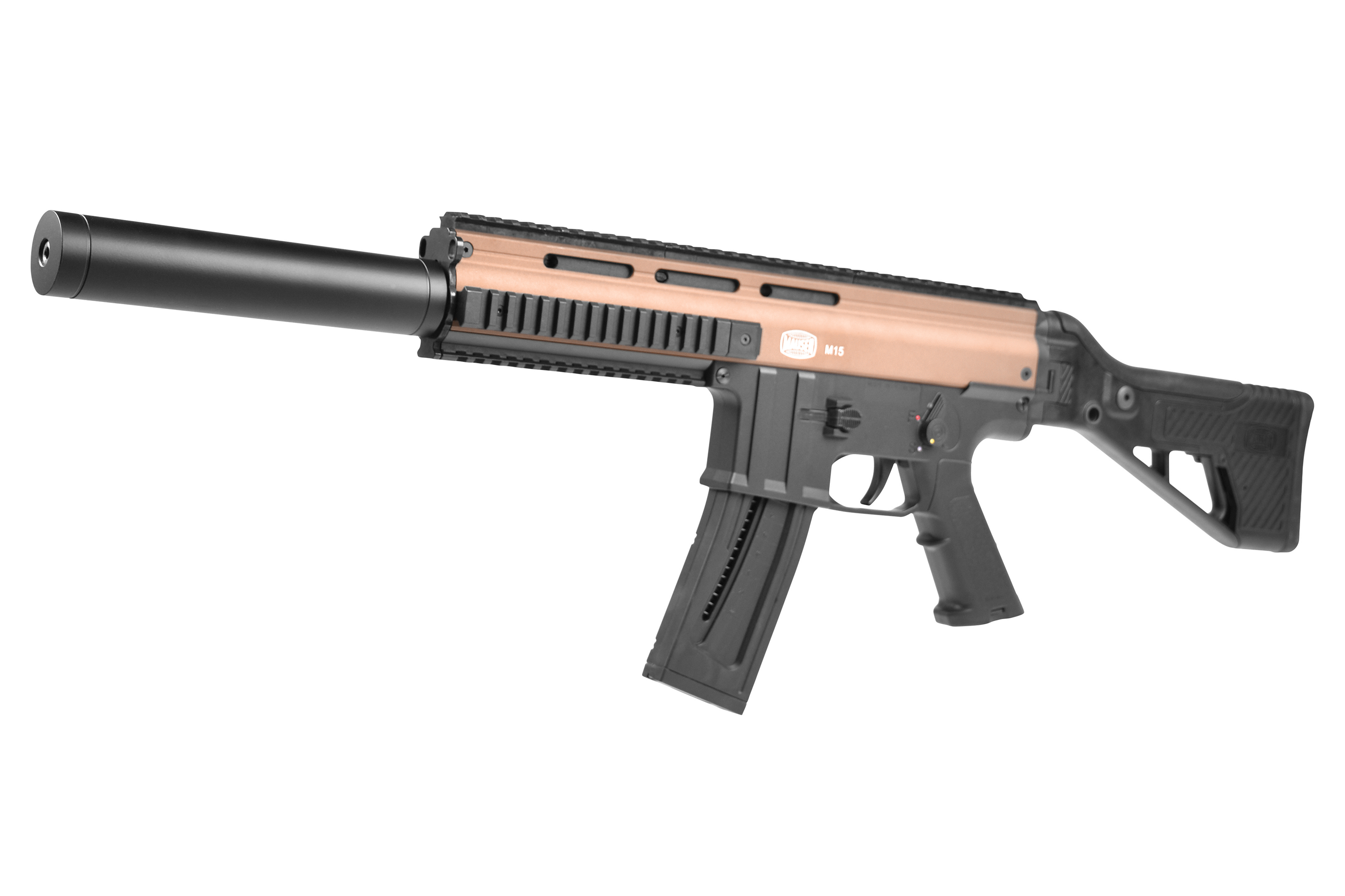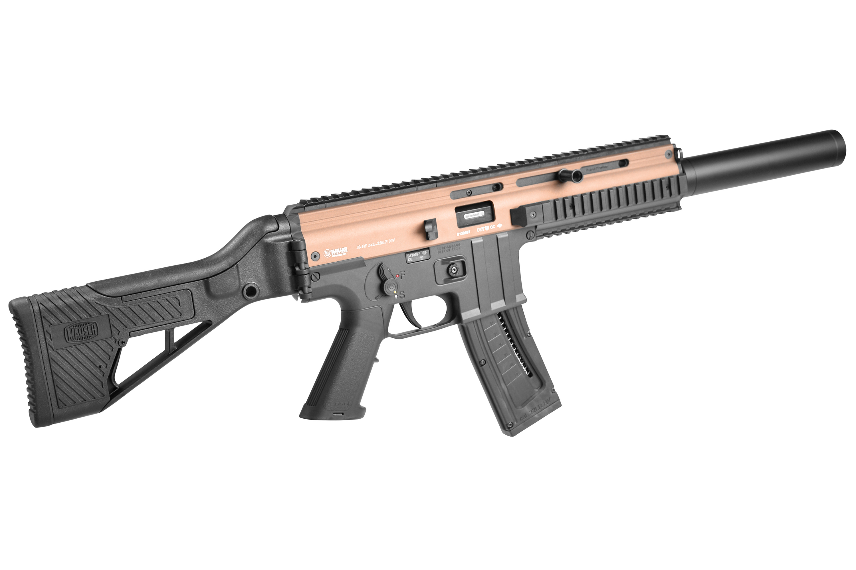 Die MAUSER M15 SD ist ein modernes halbautomatisches Selbstladegewehr in taktischem Design mit Laufverkleidung. Die M15 im Kaliber .22LR HV verfügt über ein Abzuggehäuse aus glasfaserverstärktem Polymer und einen Receiver aus CNC gefrästem Aluminium. Durch den beidseitig nutzbaren Spannhebel und die beidseitig bedienbare Flügelsicherung ist es für Links- sowie Rechtshänder geeignet. Der klappbare Hinterschaft ist mehrstufig einstellbar. Für einen noch bequemeren Halt sorgt die verstellbare Wangenauflage. Die Flip-Up-Visierung ist abnehmbar und ermöglicht eine schnelle Zielerfassung. Die verschiedenen Picatinny-Schienen runden das Gesamtbild ab.