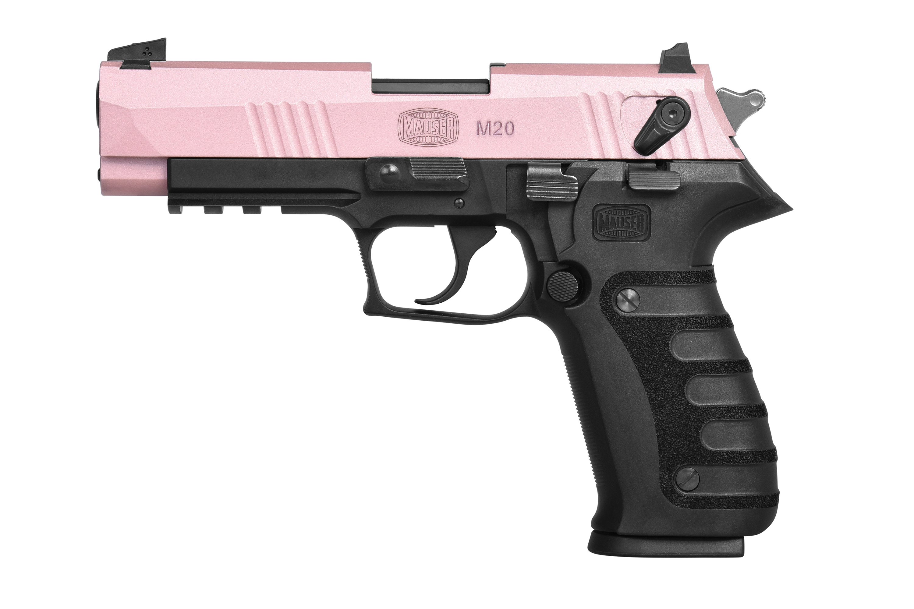 Die Mauser M20 verfügt über einen CNC gefrästen Aluminiumschlitten und ermöglicht somit den Einsatz auch schwächer geladener Standard-Munition bis hin zu HV Munition und deckt somit die ganze Bandbreite der unterschiedlichen Laborierungen ab. Ausgestattet mit einem ergonomischen Polymer Griffstück und schwarzen Kunststoff Griffschalen, Single – und Double-Action Abzug, Picatinny-Schiene zur Anbringung einer Brückenmontage, Metallmagazin, beidseitiger Flügelsicherung, Entspannhebel und einstellbarer Visierung.