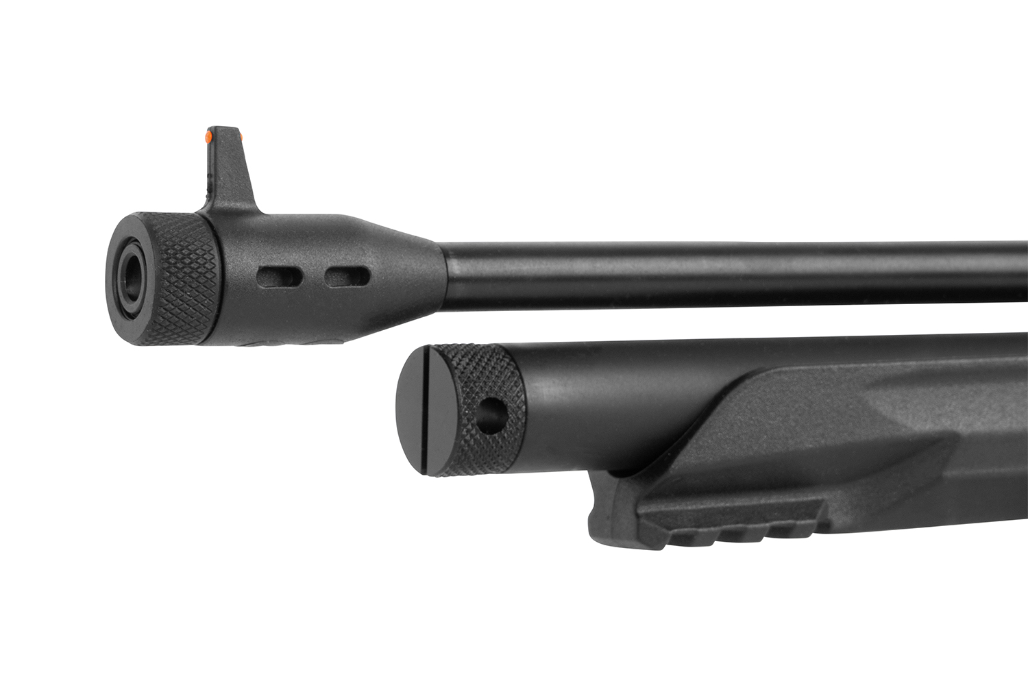 Das seitliche Spannsystem ermöglicht ein komfortables Nachladen. Die Pistole kann wahlweise mit Magazin oder als Einzellader genutzt werden. Eine Fiberoptik-Visierung unterstützt die Zielerfassung, während eine integrierte Schiene die Montage von Zubehör erlaubt.