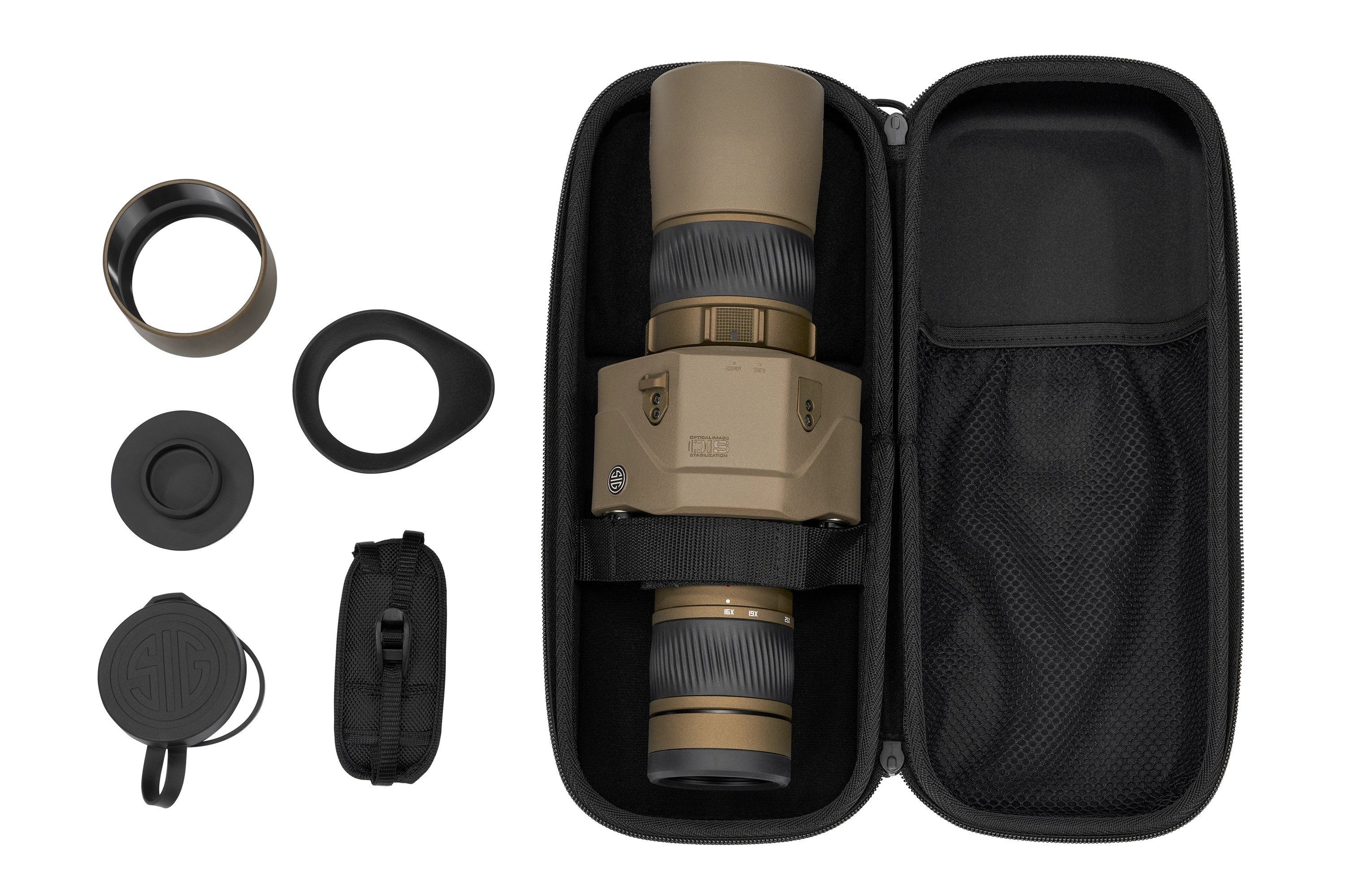 - Inklusive Handschlaufe, EVA-Hartschalenkoffer, Sonnenblende und Gummi-Augenmuschel