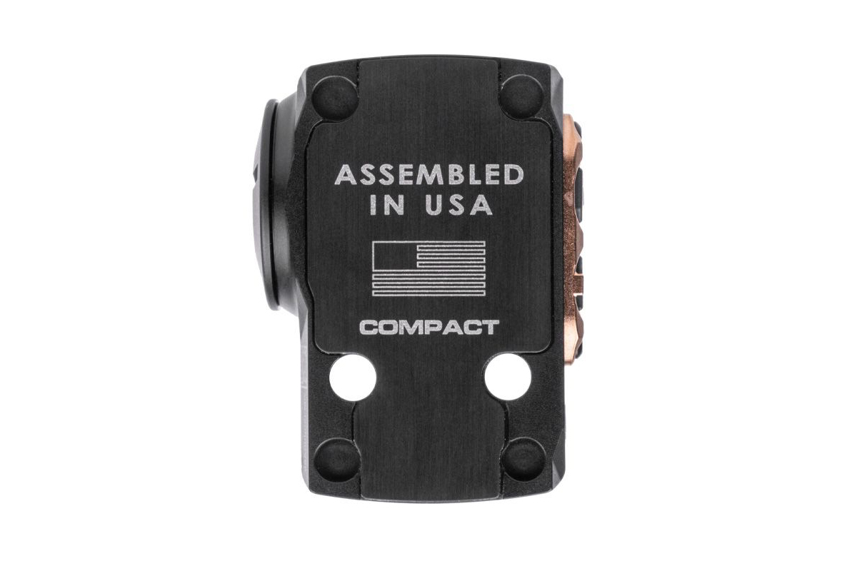 - MAGNETAC™ (Magnetische Aktivierung): Ein Sensor in der Optik erkennt einen Neodym-Magneten in einem kompatiblen Holster, um die Optik beim Tragen im Holster automatisch auszuschalten und so die Batterielebensdauer zu verlängern. Wenn die Waffe aus dem Holster gezogen wird, schaltet sich die Optik sofort auf die zuletzt verwendete Einstellung ein.
