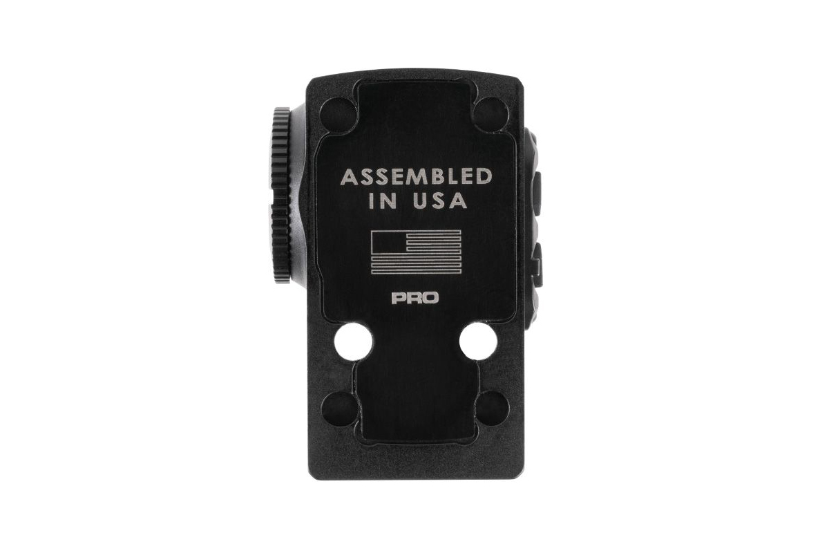 - MAGNETAC™ (Magnetische Aktivierung): Ein Sensor in der Optik erkennt einen Neodym-Magneten in einem kompatiblen Holster, um die Optik beim Tragen im Holster automatisch auszuschalten und so die Batterielebensdauer zu verlängern. Wenn die Waffe aus dem Holster gezogen wird, schaltet sich die Optik sofort auf die zuletzt verwendete Einstellung ein.