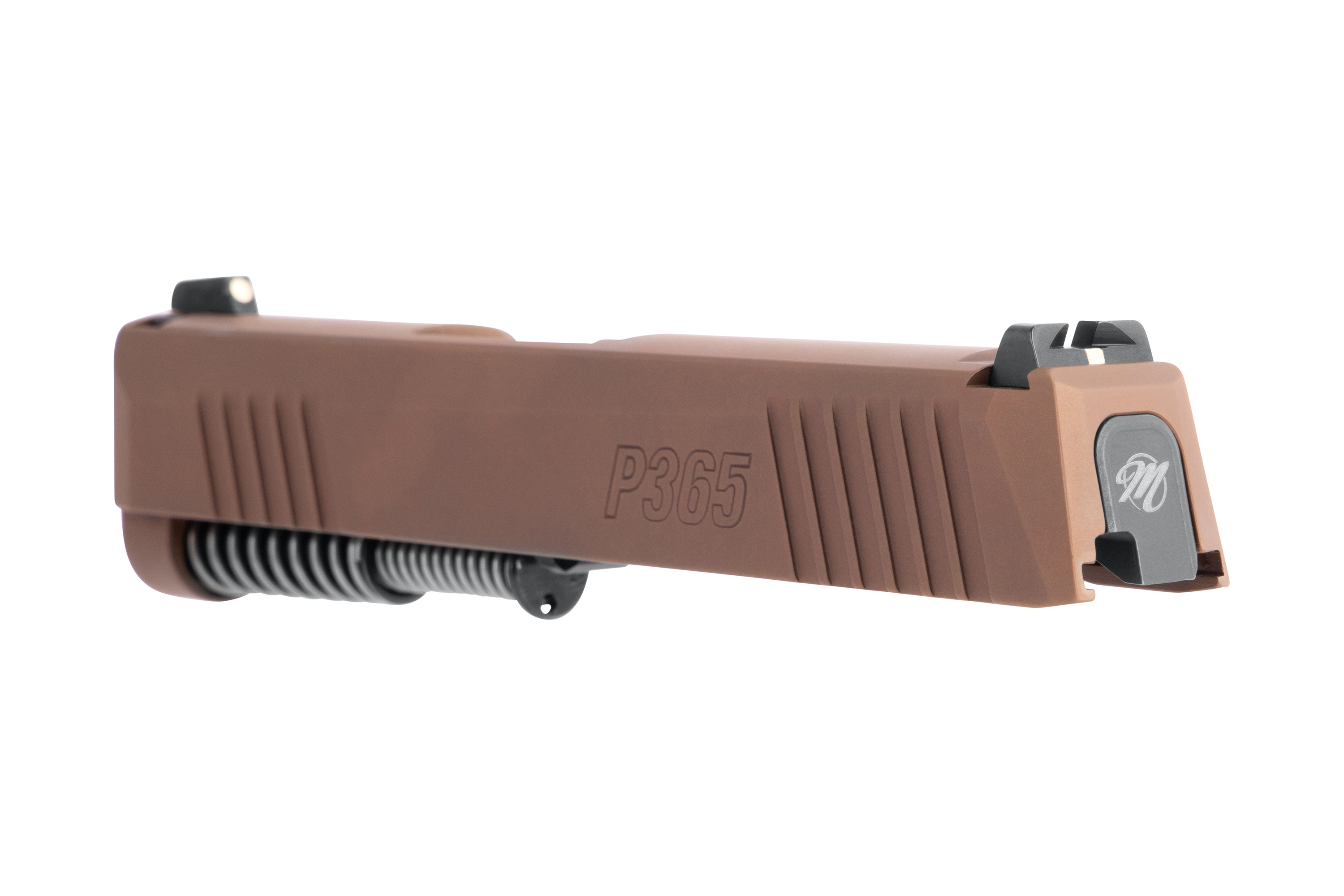 Das P365 Wechselsystem wurde so aufgebaut, dass es auf allen P365 Griffstücken/ Systemen mit 3,1'' Lauflänge verwendet werden kann, unabhängig davon, ob die Grundwaffe mit oder ohne manuelle Sicherung ausgestattet ist.