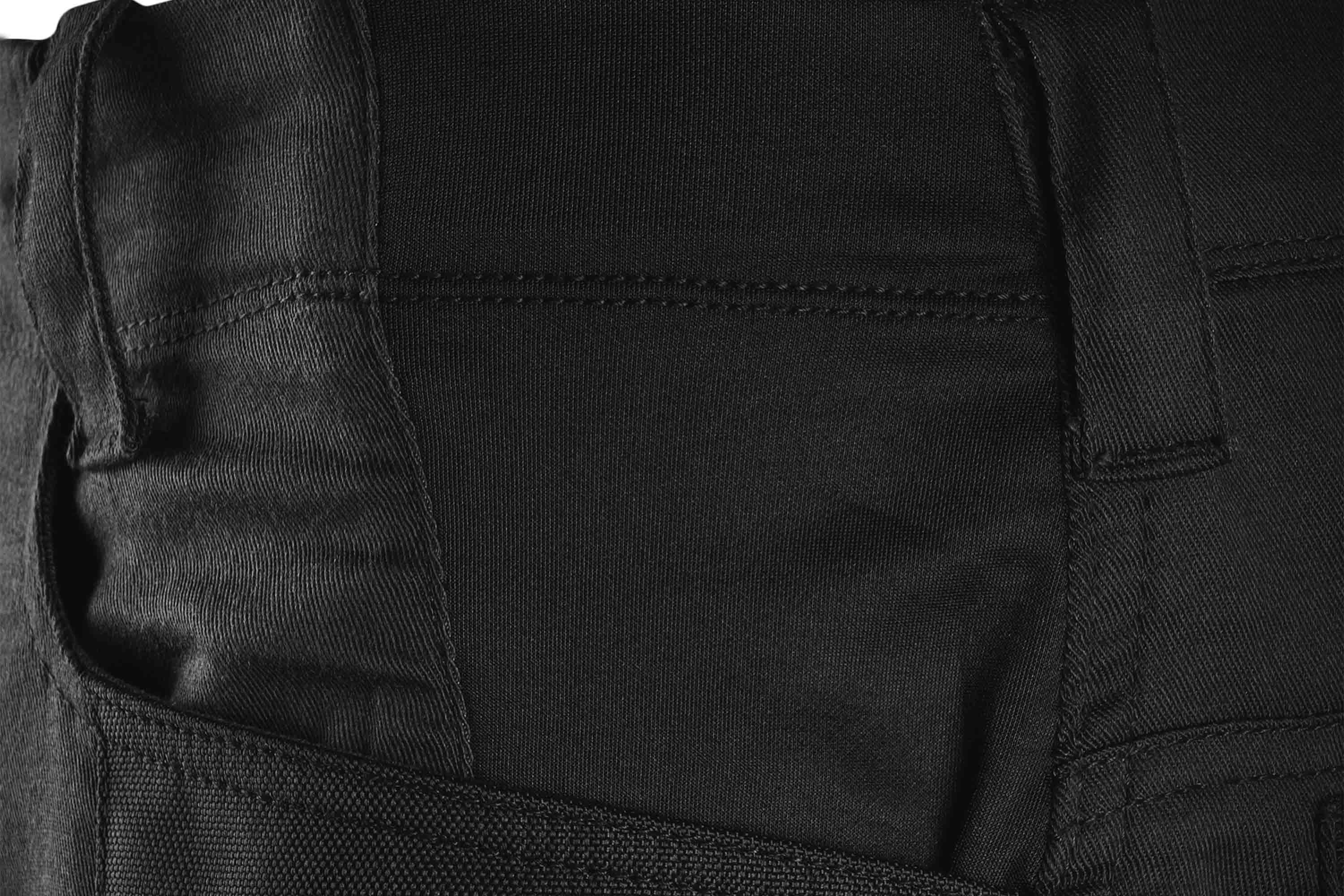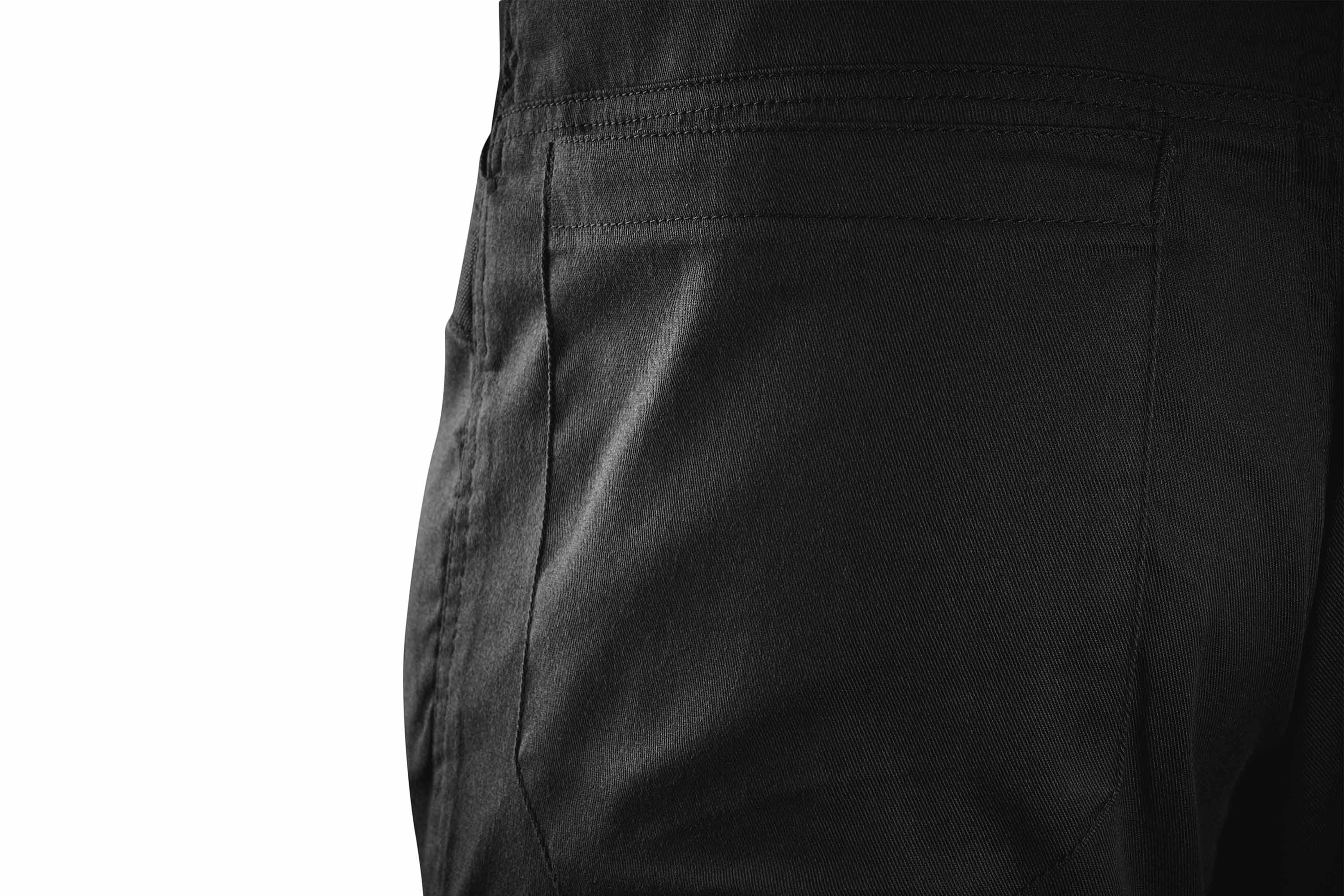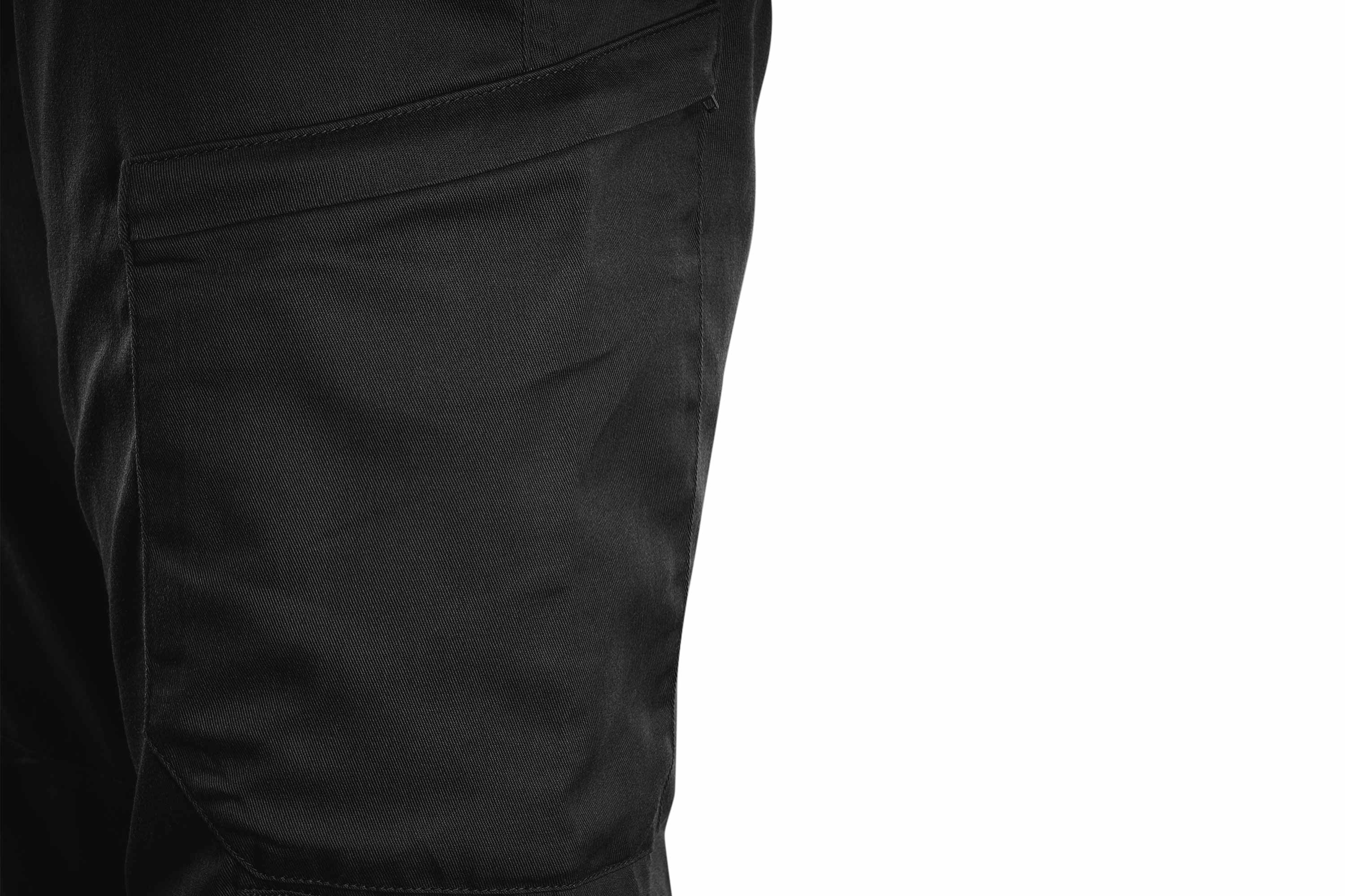 Zusätzlich stehen verstärkte Hüfttaschen sowie zwei Gesäßtaschen zur Verfügung. Hochwertige YKK-Reißverschlüsse sorgen dabei für zuverlässige Funktion und Langlebigkeit.