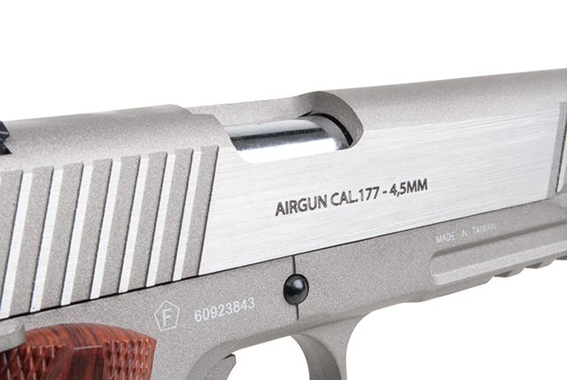 Produktinformationen "Swiss Arms P1911 Stainless 4,5mm BB - Druckluft Co2 BlowBack"