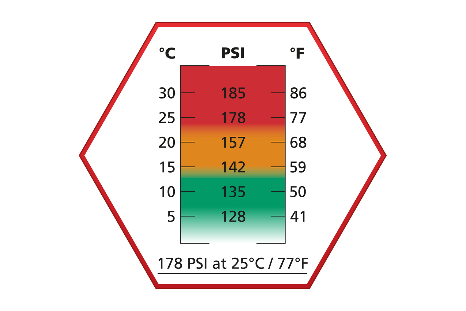 • Nenndruck: 178 psi (getestet bei 25 °C)