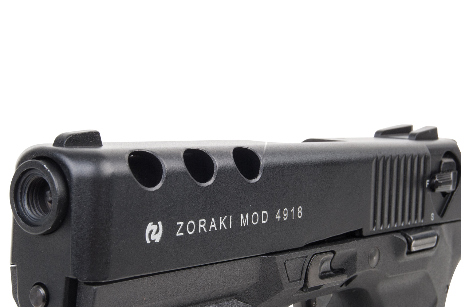 Die Gas-Signalpistole aus dem Hause Zoraki verfügt über einen Polymer-Body, stahlverstärkte Funktionsteile, eine integrierte Railschiene und einen Double-Action Abzug. Sie kann mit wenigen Handgriffen zerlegt werden.